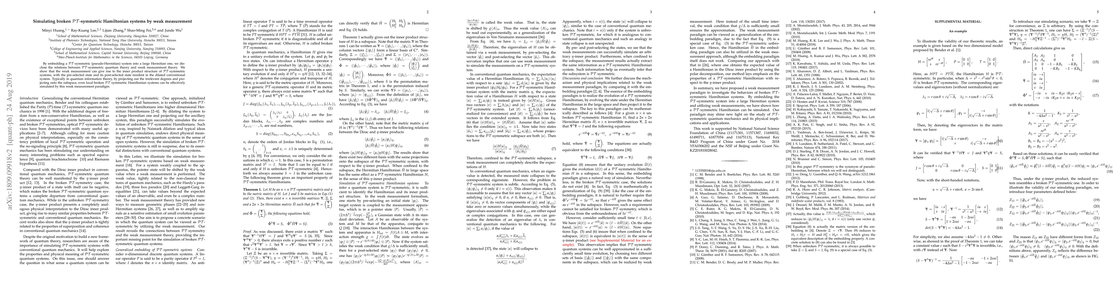 This paper explores how weak measurement theory can simulate broken $\cal PT$-symmetric Hamiltonian systems by embedding them into a larger Hermitian system, demonstrating the amplification effect in weak measurement to simulate local broken $\cal PT$-symmetric dynamics.
