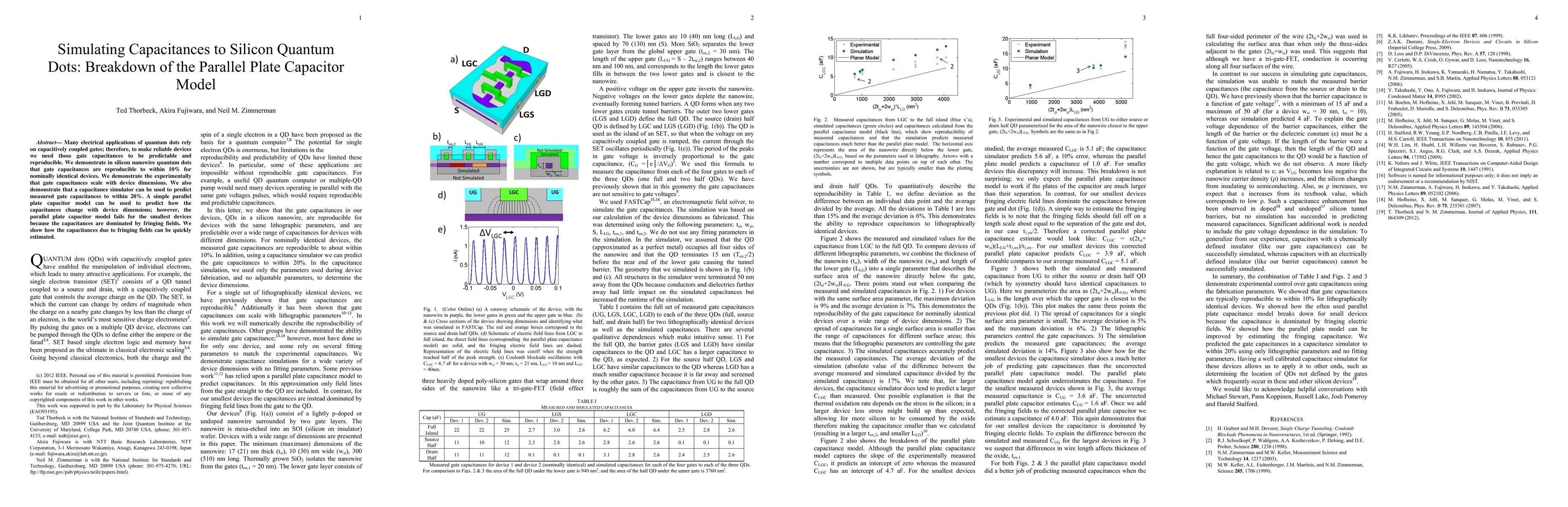 This paper investigates gate capacitances in silicon nanowire quantum dots, demonstrating reproducibility within 10% and scaling with device dimensions. It highlights the limitations of the parallel plate capacitor model for small devices due to fringing fields, and proposes a capacitance simulator to predict capacitances within 20%.