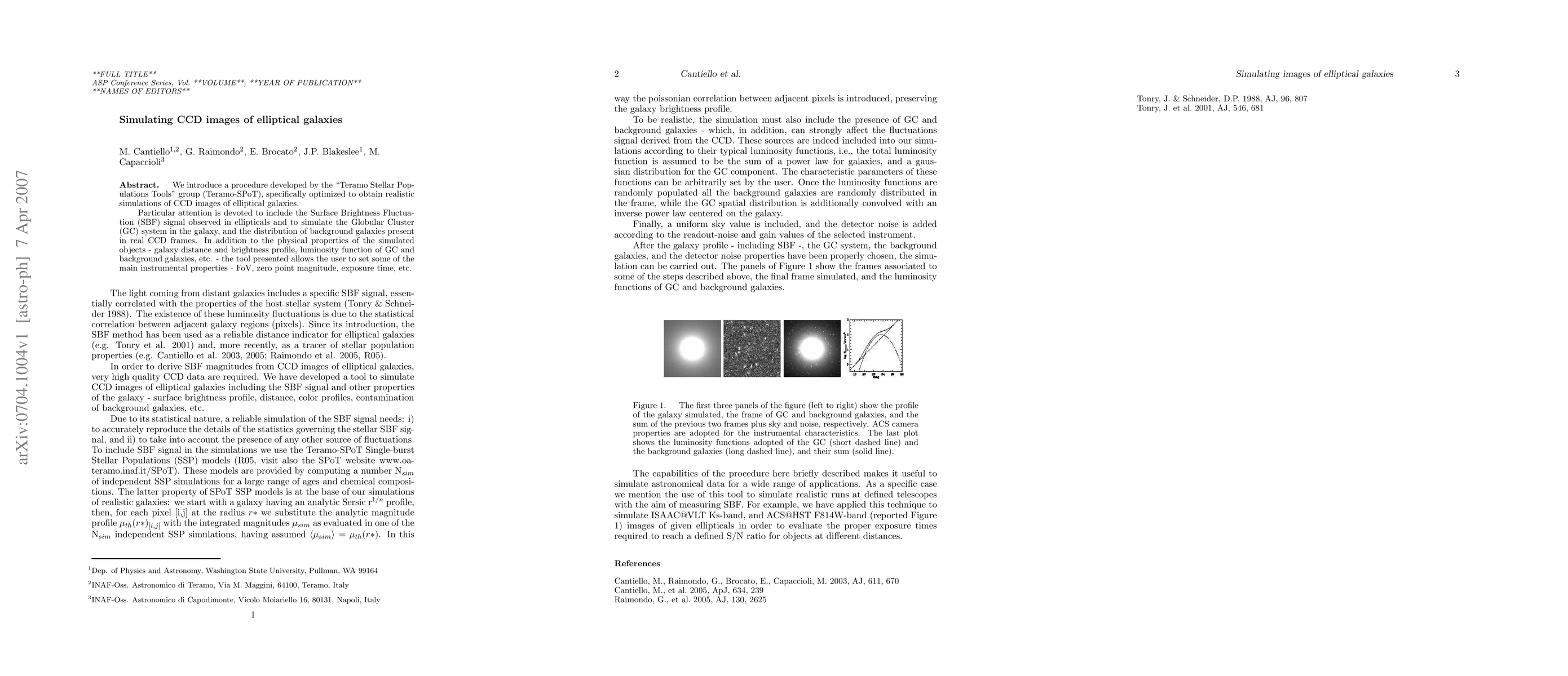 Researchers developed a tool to simulate CCD images of elliptical galaxies, including realistic features like surface brightness fluctuations and globular clusters, allowing for accurate modeling of galaxy observations.