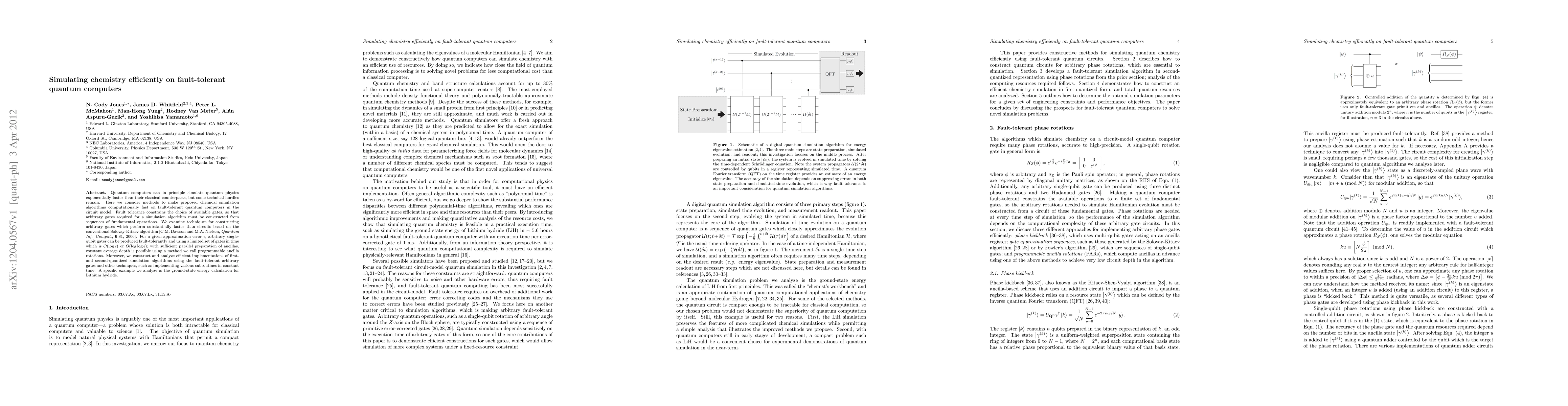 This paper explores methods to efficiently simulate chemistry on fault-tolerant quantum computers, focusing on constructing arbitrary gates from a limited set of fundamental operations. The proposed techniques achieve faster gate construction and constant average depth, enabling efficient implementations of first- and second-quantized simulation algorithms, exemplified by the ground-state energy calculation for Lithium hydride.