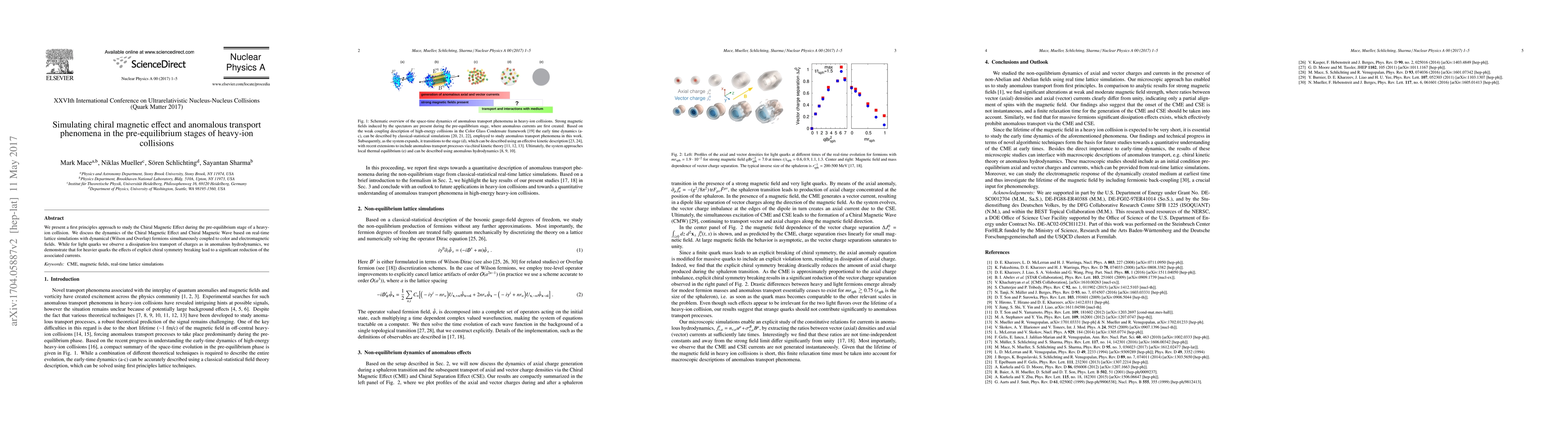 We present a first principles approach to study the Chiral Magnetic Effect during the pre-equilibrium stage of a heavy-ion collision. We discuss the dynamics of the Chiral Magnetic Effect and Chiral Magnetic Wave based on real-time lattice simulations with dynamical (Wilson and Overlap) fermions simultaneously coupled to color and electromagnetic fields. While for light quarks we observe a dissipation-less transport of charges as in anomalous hydrodynamics, we demonstrate that for heavier quarks the effects of explicit chiral symmetry breaking lead to a significant reduction of the associated currents.
