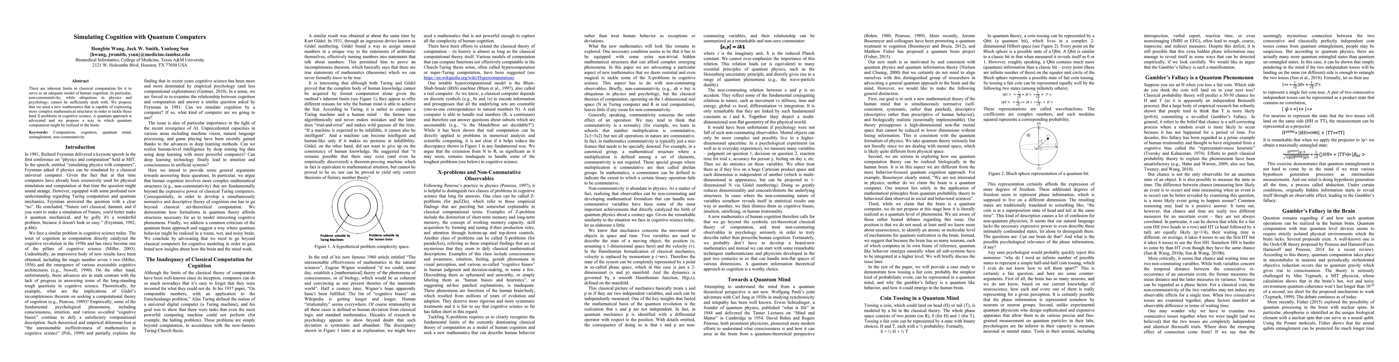 Researchers propose using quantum computers to simulate human cognition due to limitations of classical computation in modeling complex cognitive processes. They advocate for a 'quantum mind approach' to tackle hard problems in cognitive science.