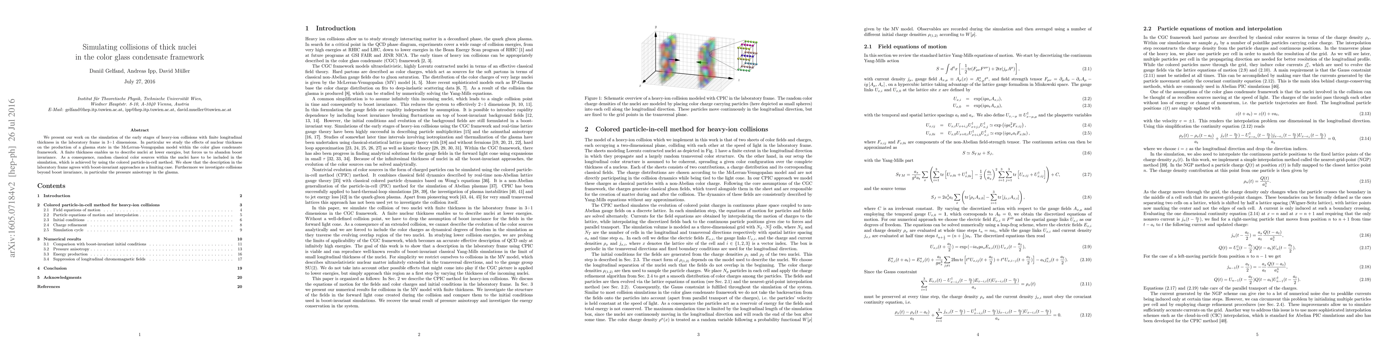 This paper simulates the early stages of heavy-ion collisions considering nuclei with finite longitudinal thickness, employing the color glass condensate framework. The study uses the colored particle-in-cell method to include random classical color sources, revealing pressure anisotropy in the glasma and demonstrating agreement with boost-invariant approaches.