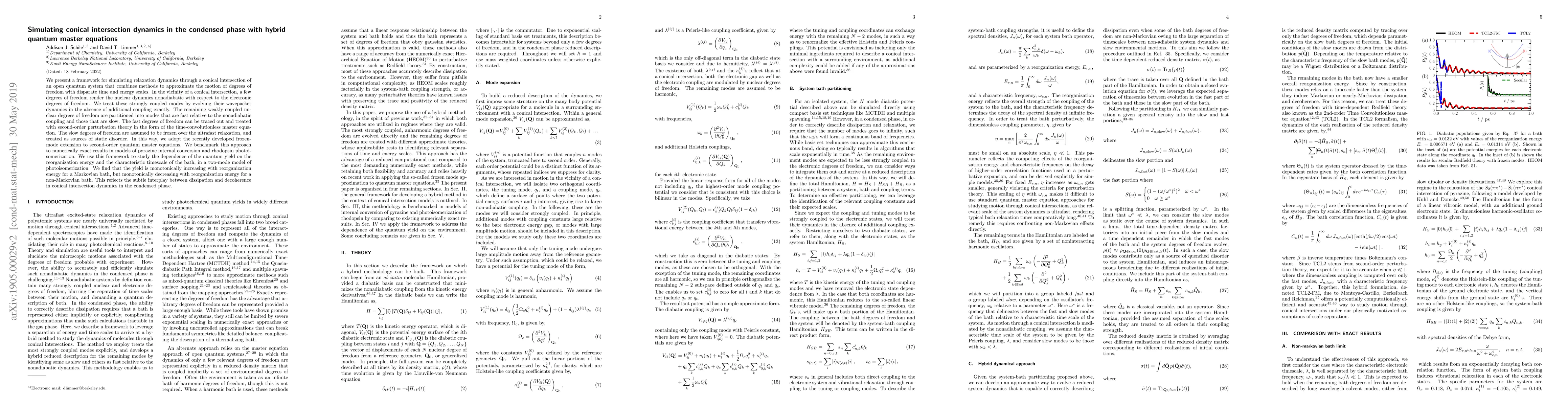 This paper introduces a hybrid quantum master equation framework to simulate relaxation dynamics near conical intersections in open quantum systems. It combines exact wavepacket dynamics for strongly coupled modes with perturbation theory for weakly coupled modes, and benchmarks the method against exact results in pyrazine and rhodopsin models, revealing distinct dependencies on reorganization energy and bath characteristics for Markovian and non-Markovian environments.