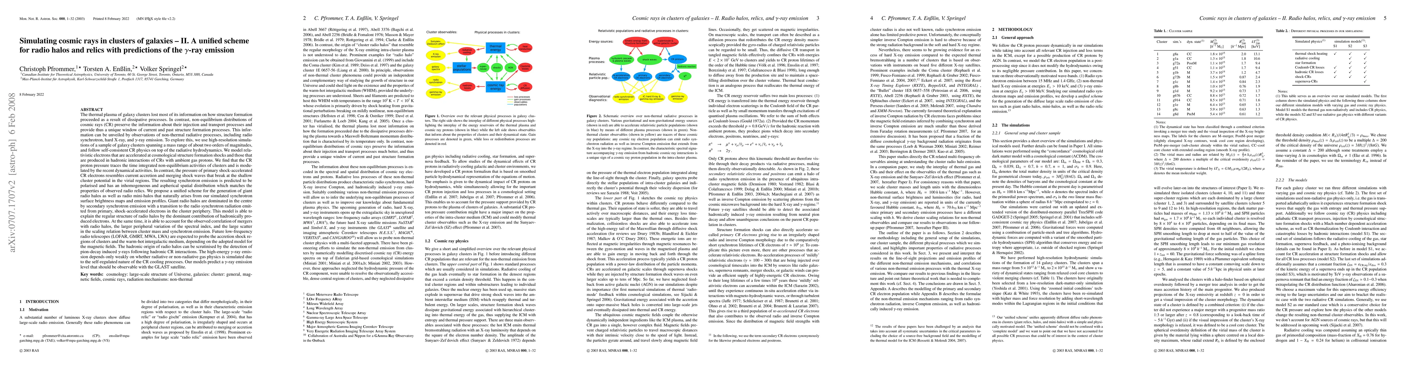 The thermal plasma of galaxy clusters lost most of its information on how structure formation proceeded as a result of dissipative processes. In contrast, non-equilibrium distributions of cosmic rays (CR) preserve the information about their injection and transport processes and provide thus a unique window of current and past structure formation processes. This information can be unveiled by observations of non-thermal radiative processes, including radio synchrotron, hard X-ray, and gamma-ray emission. To explore this, we use high-resolution simulations of a sample of galaxy clusters spanning a mass range of about two orders of magnitudes, and follow self-consistent CR physics on top of the radiative hydrodynamics. We model CR electrons that are accelerated at cosmological structure formation shocks and those that are produced in hadronic interactions of CRs with ambient gas protons. We find that CR protons trace the time integrated non-equilibrium activities of clusters while shock-accelerated CR electrons probe current accretion and merging shock waves. The resulting inhomogeneous synchrotron emission matches the properties of observed radio relics. We propose a unified model for the generation of radio halos. Giant radio halos are dominated in the centre by secondary synchrotron emission with a transition to the synchrotron radiation emitted from shock-accelerated electrons in the cluster periphery. This model is able to explain the observed correlation of mergers with radio halos, the larger peripheral variation of the spectral index, and the large scatter in the scaling relation between cluster mass and synchrotron emission. Future low-frequency radio telescopes (LOFAR, GMRT, MWA, LWA) are expected to probe the accretion shocks of clusters. [abridged]