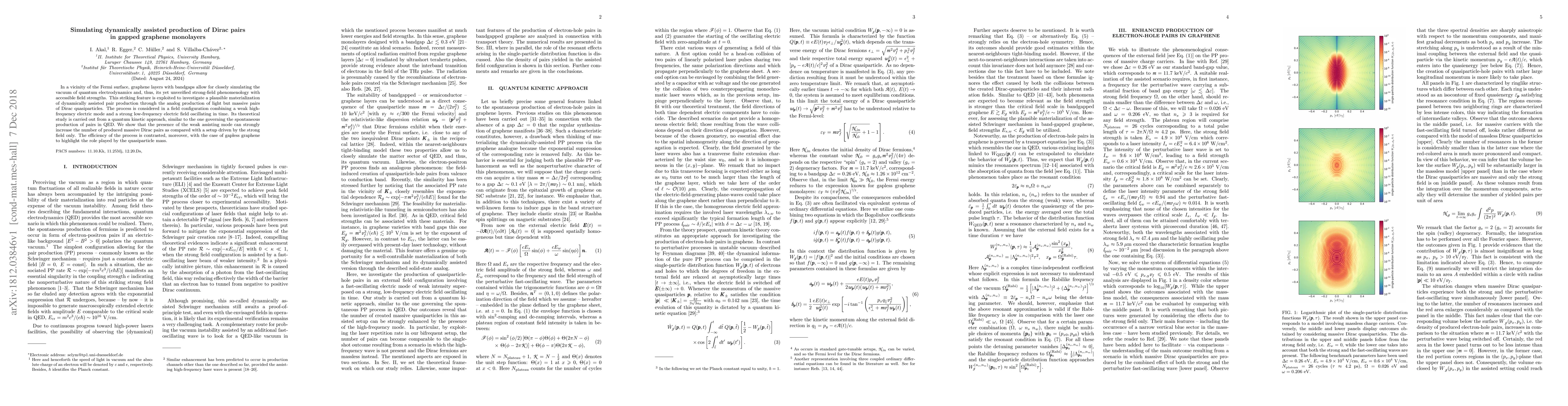 In a vicinity of the Fermi surface, graphene layers with bandgaps allow for closely simulating the vacuum of quantum electrodynamics and, thus, its yet unverified strong-field phenomenology with accessible field strengths. This striking feature is exploited to investigate a plausible materialization of dynamically assisted pair production through the analog production of light but massive pairs of Dirac quasiparticles. The process is considered in a field configuration combining a weak high-frequency electric mode and a strong low-frequency electric field oscillating in time. Its theoretical study is carried out from a quantum kinetic approach, similar to the one governing the spontaneous production of pairs in QED. We show that the presence of the weak assisting mode can strongly increase the number of produced massive Dirac pairs as compared with a setup driven by the strong field only. The efficiency of the process is contrasted, moreover, with the case of gapless graphene to highlight the role played by the quasiparticle mass.