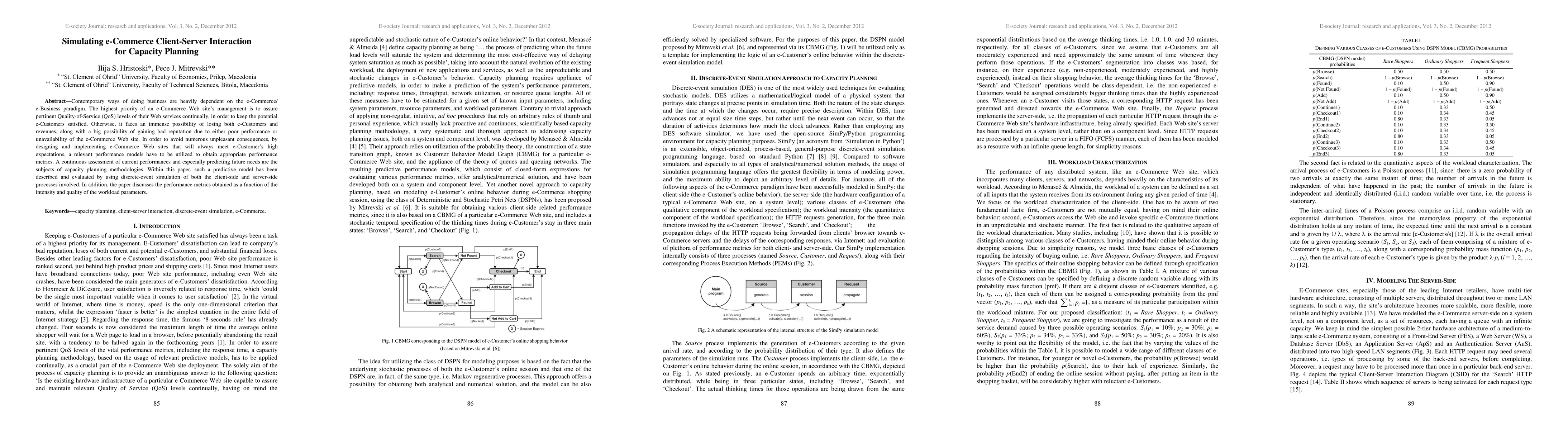 This research paper develops a predictive model for e-commerce capacity planning through discrete-event simulation of client-server interaction, aiming to ensure high Quality-of-Service levels and prevent negative consequences such as losing customers and revenue.