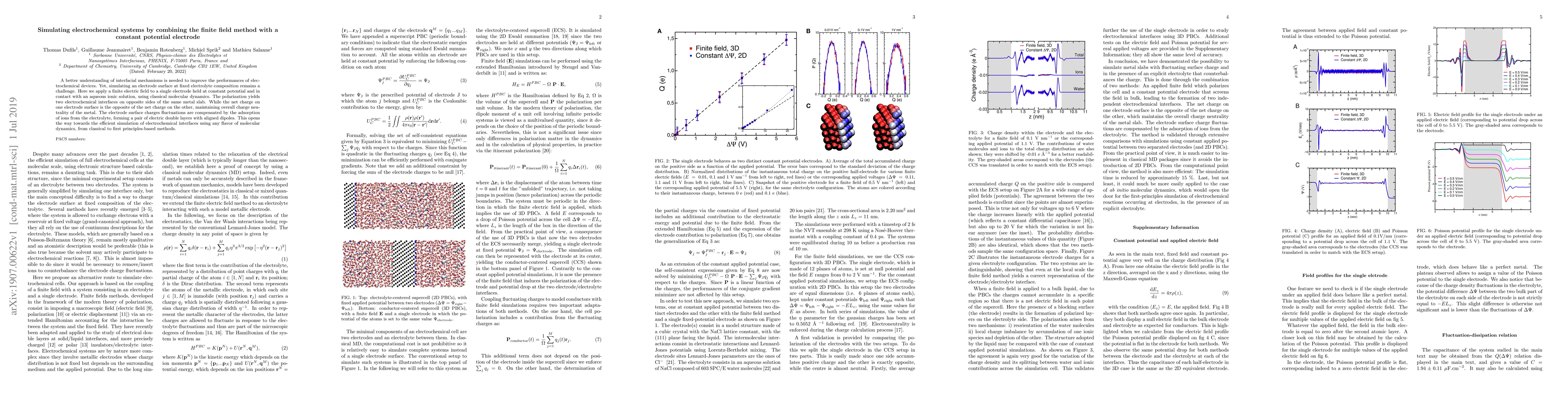 This paper proposes a method combining the finite field method with a constant potential electrode to simulate electrochemical interfaces using classical molecular dynamics. The approach creates two electrochemical interfaces on opposite sides of a metal slab, allowing for the efficient simulation of interfacial mechanisms in electrochemical systems.