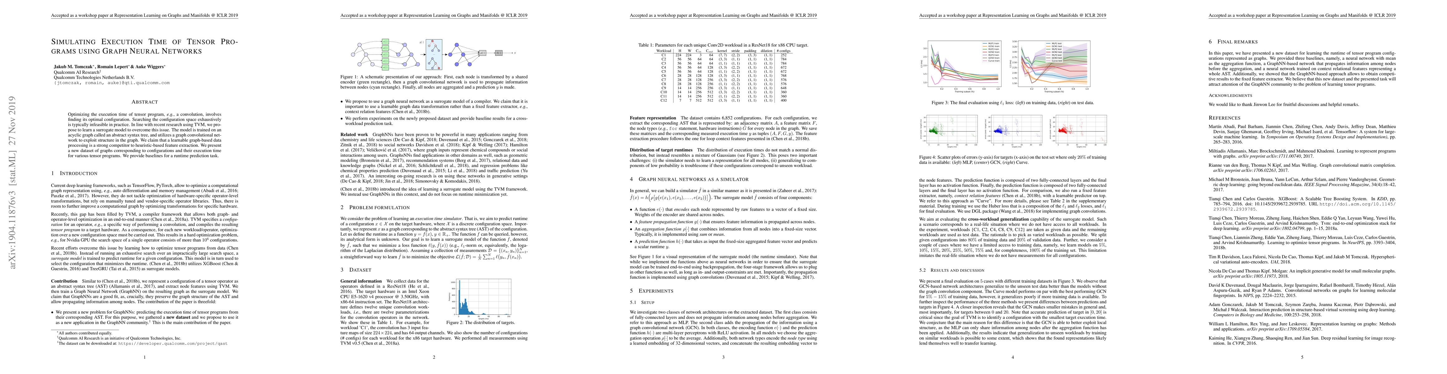 This paper proposes a graph neural network to simulate the execution time of tensor programs by learning from abstract syntax trees, aiming to optimize configurations efficiently. The study introduces a new dataset for training and evaluating the model, asserting that graph-based data processing can outperform heuristic-based methods.