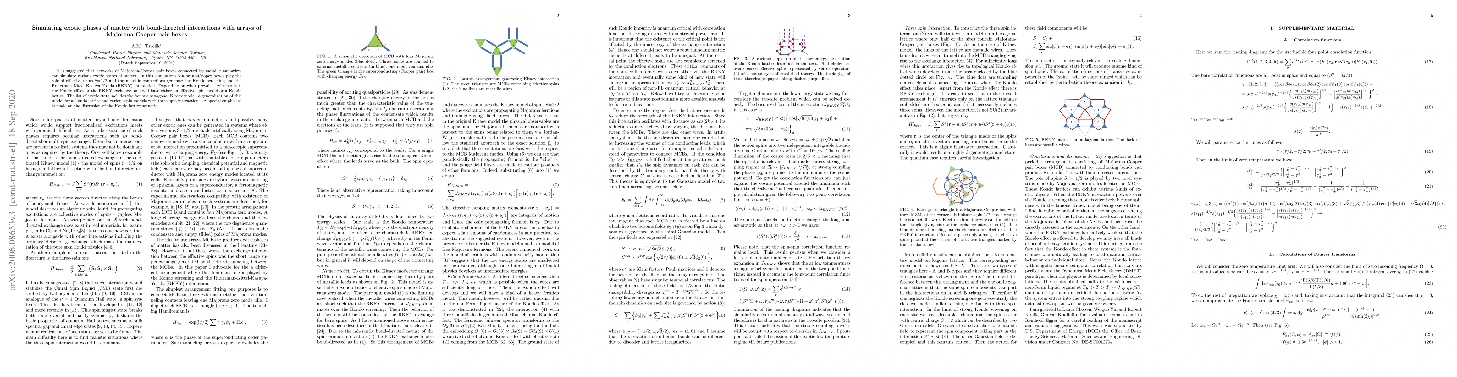 It is suggested that networks of Majorana-Cooper pair boxes connected by metallic nanowires can simulate various exotic states of matter. In this simulations Majorana-Cooper boxes play the role of effective spins S=1/2 and the metallic connections generate the Kondo screening and the Ruderman-Kittel-Kasuya-Yosida (RKKY) interaction. Depending on what prevails - whether it is the Kondo effect or the RKKY exchange, one will have either an effective spin model or a Kondo lattice. The list of exotic stets includes the famous hexagonal Kitaev model, a generalization of this model for a Kondo lattice and various spin models with three-spin interactions. A special emphasize is made on the discussion of the Kondo lattice scaenario.