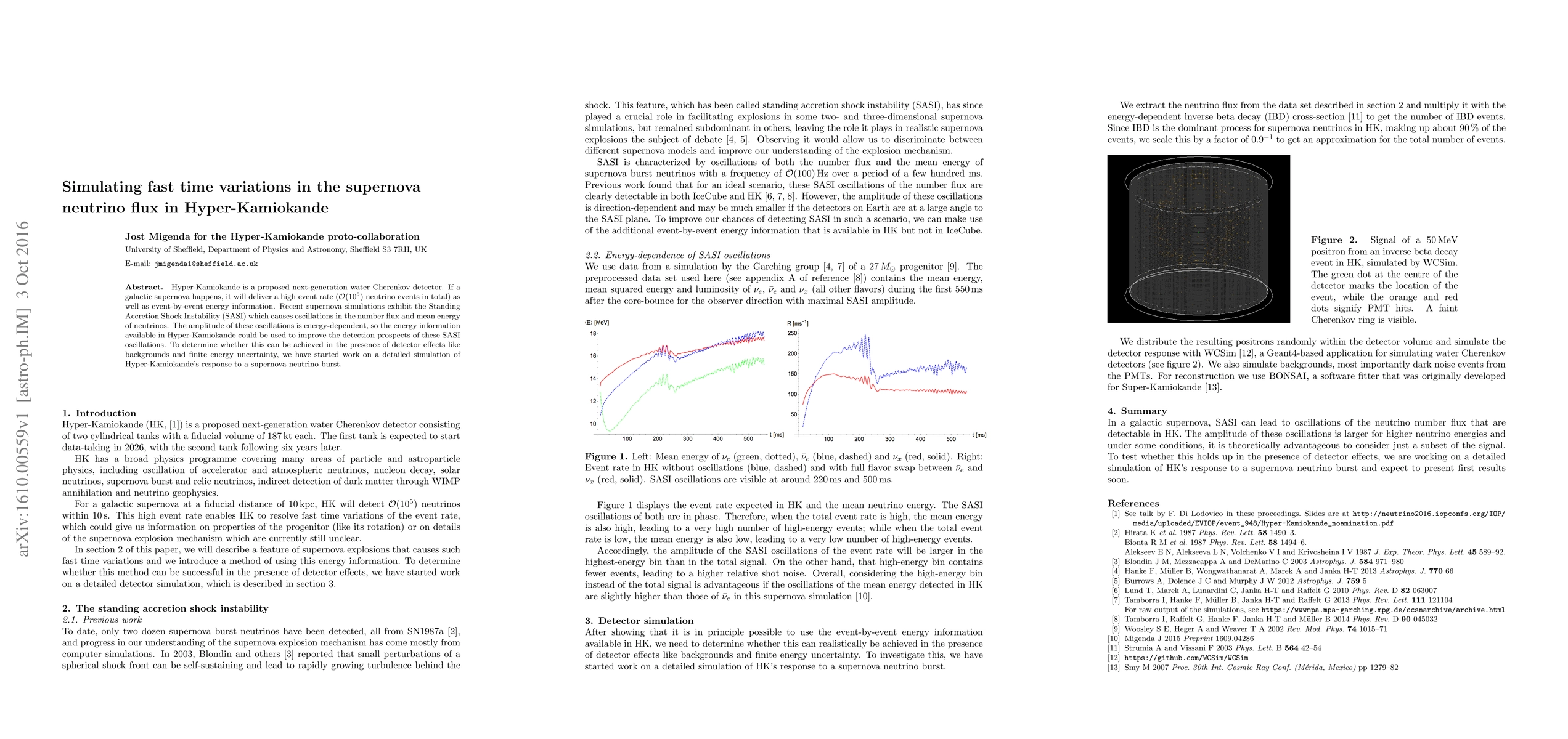Hyper-Kamiokande is a proposed next-generation water Cherenkov detector. If a galactic supernova happens, it will deliver a high event rate ($\mathcal{O}(10^5)$ neutrino events in total) as well as event-by-event energy information. Recent supernova simulations exhibit the Standing Accretion Shock Instability (SASI) which causes oscillations in the number flux and mean energy of neutrinos. The amplitude of these oscillations is energy-dependent, so the energy information available in Hyper-Kamiokande could be used to improve the detection prospects of these SASI oscillations. To determine whether this can be achieved in the presence of detector effects like backgrounds and finite energy uncertainty, we have started work on a detailed simulation of Hyper-Kamiokande's response to a supernova neutrino burst.