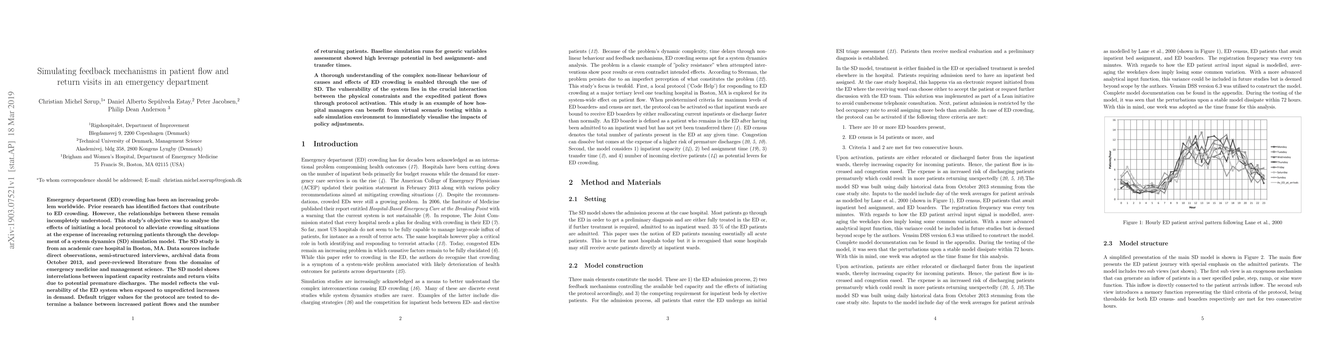 This study uses system dynamics to simulate feedback mechanisms in an emergency department (ED) to understand the interplay between crowding, patient flow, and return visits. The simulation model reveals the vulnerability of ED systems to demand surges and highlights the balance between alleviating crowding and managing return visits.