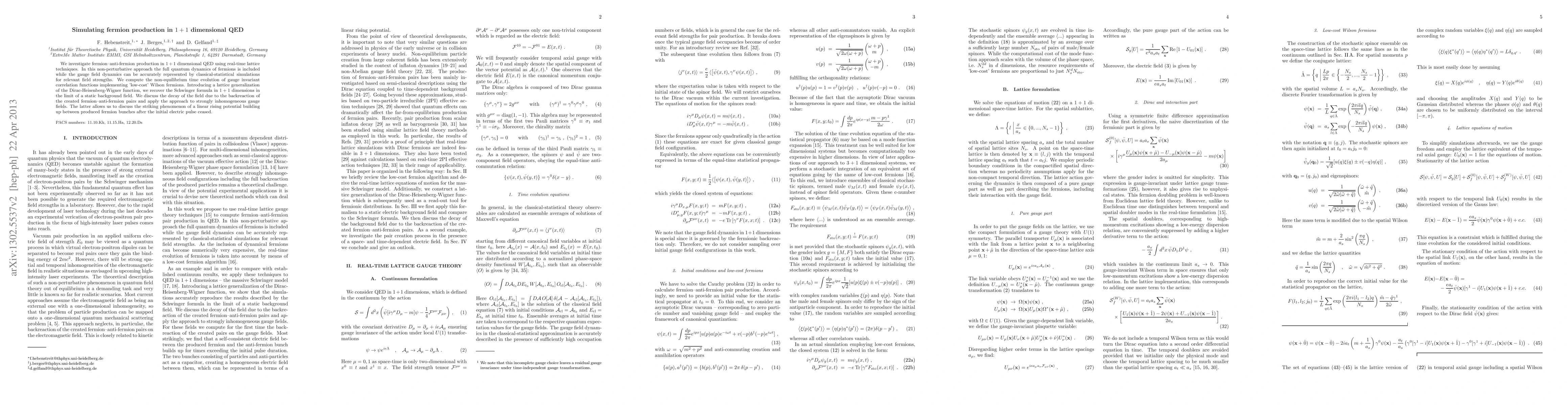 Researchers simulated fermion production in 1+1 dimensional Quantum Electrodynamics using real-time lattice techniques, recovering the Schwinger formula and studying a linear rising potential between produced fermion bunches.