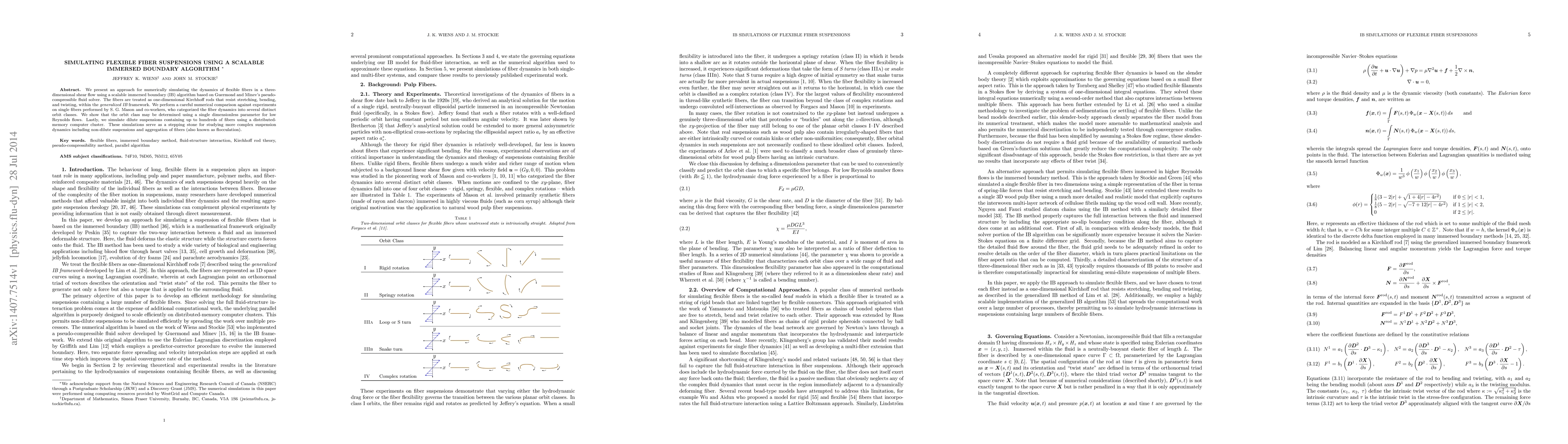 This paper presents a scalable immersed boundary algorithm for simulating flexible fiber dynamics in shear flow, treating fibers as Kirchhoff rods. The method accurately predicts fiber behavior, categorized into distinct orbit classes, and demonstrates its scalability through simulations of fiber suspensions on a distributed-memory cluster.