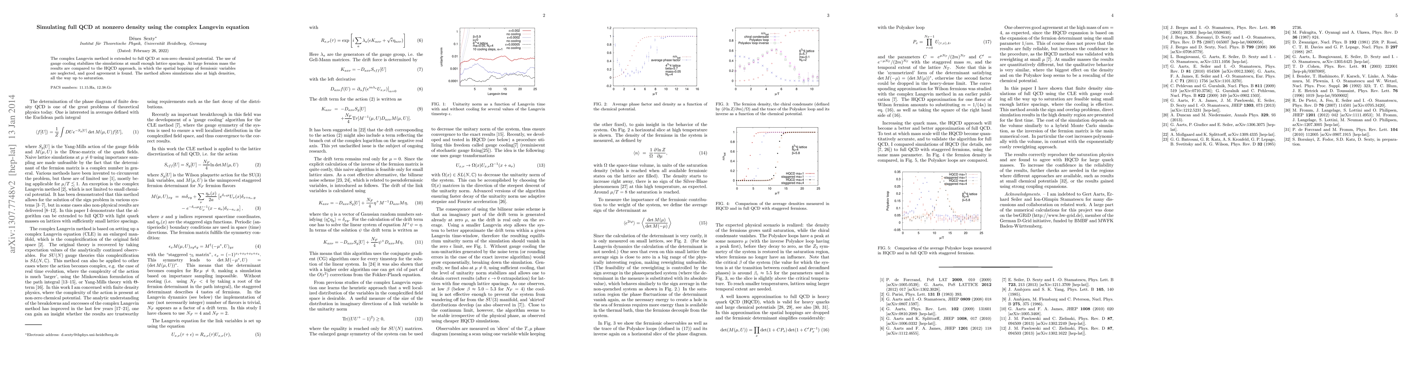 The complex Langevin method is applied to simulate full QCD at non-zero chemical potential, stabilizing simulations with gauge cooling. Results at large fermion mass align well with the HQCD approach, enabling simulations up to high density saturation.