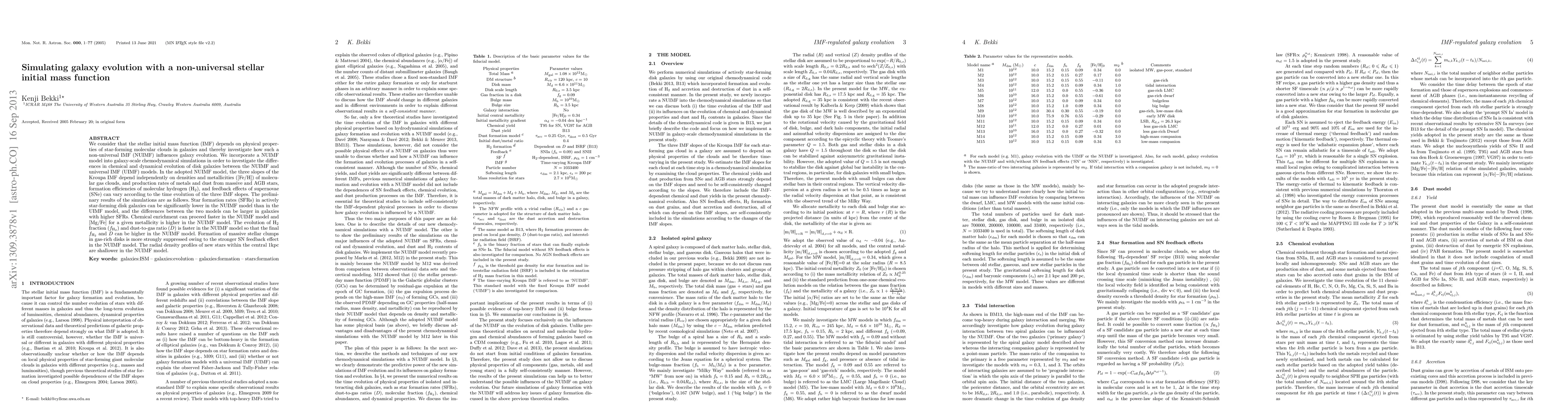 This study explores how a non-universal stellar initial mass function affects galaxy evolution, finding that it can lead to lower star formation rates, faster chemical enrichment, and shallower radial density profiles in disk galaxies.