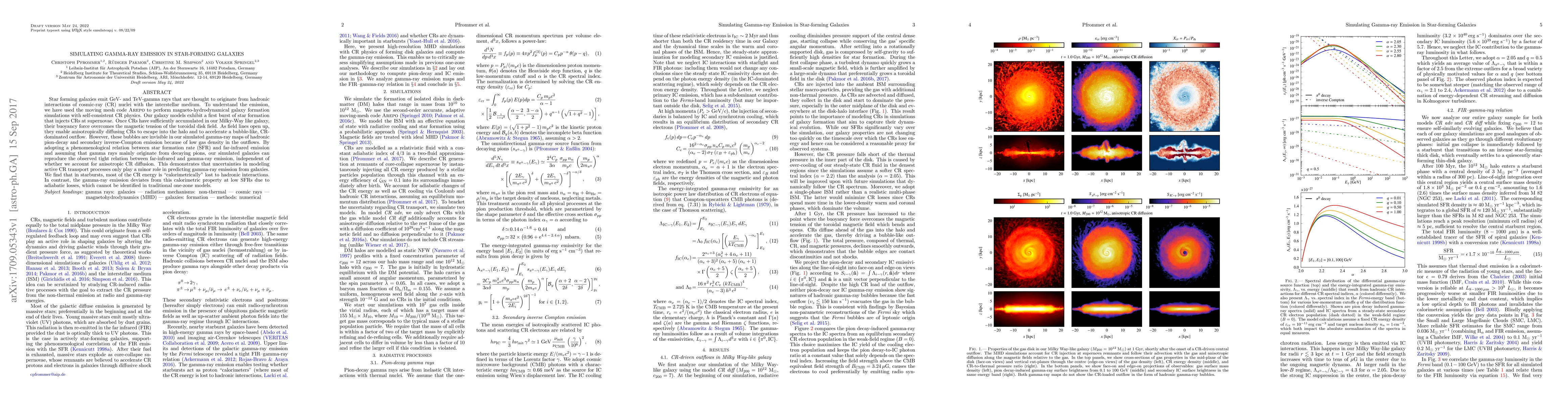 This paper uses magneto-hydrodynamical simulations with self-consistent cosmic-ray physics to model gamma-ray emission from star-forming galaxies, finding that despite complex cosmic-ray transport processes, the observed gamma-ray-far-infrared correlation can be reproduced, indicating minor impact from uncertainties in cosmic-ray modeling. The study highlights that gamma-ray emission in starbursts primarily results from hadronic interactions, while deviations at low star formation rates are due to adiabatic losses.