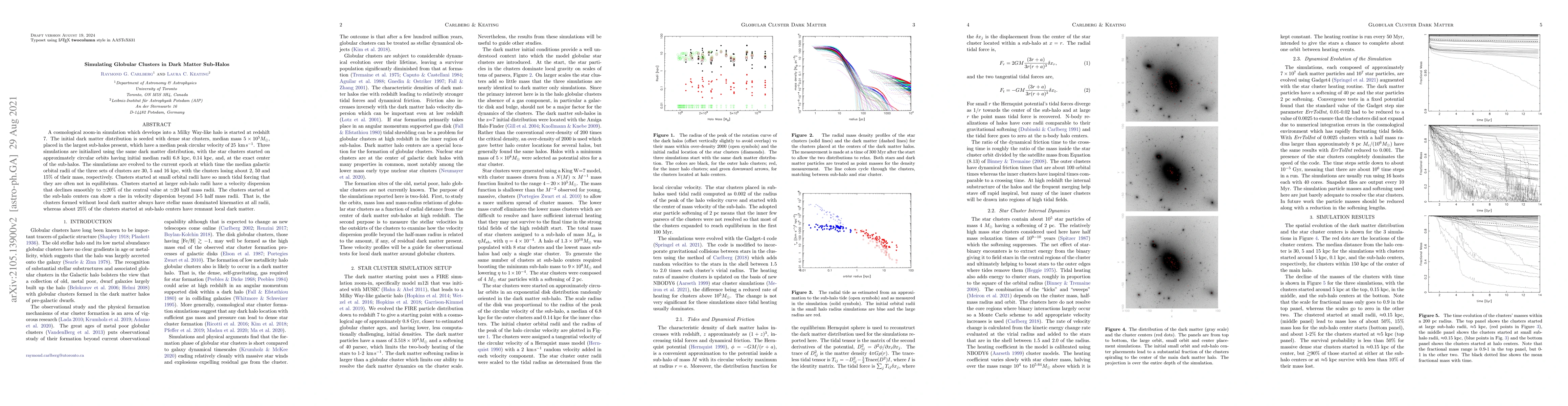 This paper investigates the evolution of globular clusters in dark matter sub-halos through cosmological simulations. Clusters initially placed in sub-halos exhibit varying degrees of tidal disruption and mass loss, with those closer to the sub-halo centers retaining some local dark matter. Clusters at larger sub-halo radii show declining velocity dispersion, while those at the centers may experience a rise in dispersion beyond 3-5 half mass radii.