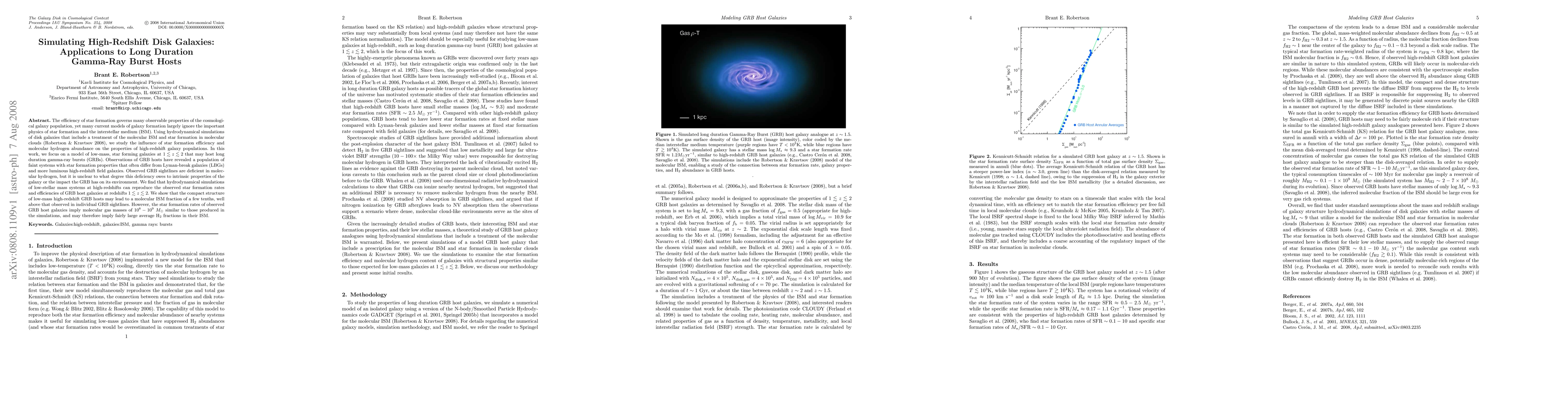 This paper uses hydrodynamical simulations of high-redshift disk galaxies to explore the star formation efficiency and molecular hydrogen abundance in low-mass galaxies that may host long duration gamma-ray bursts (GRBs). The simulations suggest that these galaxies have compact structures leading to higher molecular ISM fractions than observed in GRB sightlines, despite the apparent deficiency of molecular hydrogen.