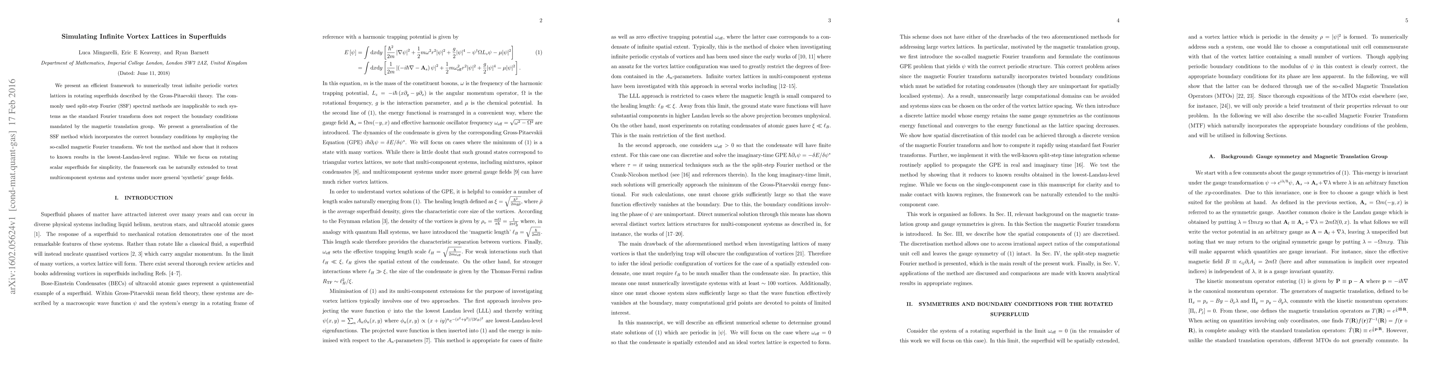 This paper introduces an advanced numerical method to simulate infinite periodic vortex lattices in rotating superfluids using the Gross-Pitaevskii theory. It generalizes the split-step Fourier method to incorporate the correct boundary conditions via the magnetic Fourier transform, demonstrating its effectiveness in the lowest-Landau-level regime.