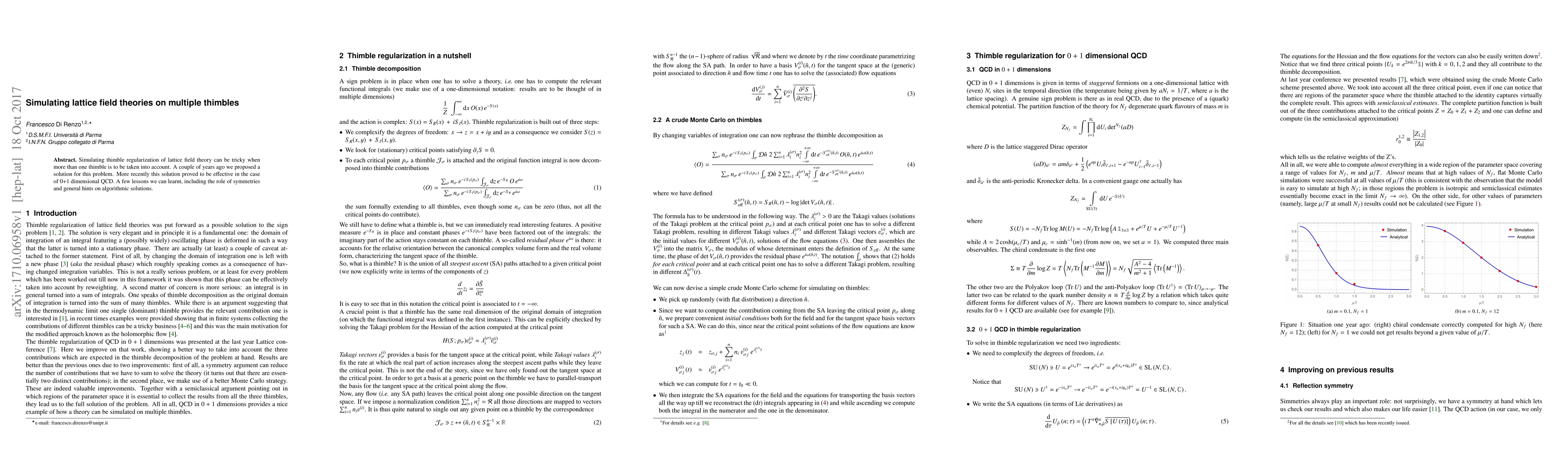 This paper discusses the effective simulation of thimble regularization for lattice field theories when multiple thimbles are involved, presenting a solution that has been successfully applied to 0+1 dimensional QCD, highlighting the importance of symmetries and providing algorithmic insights.