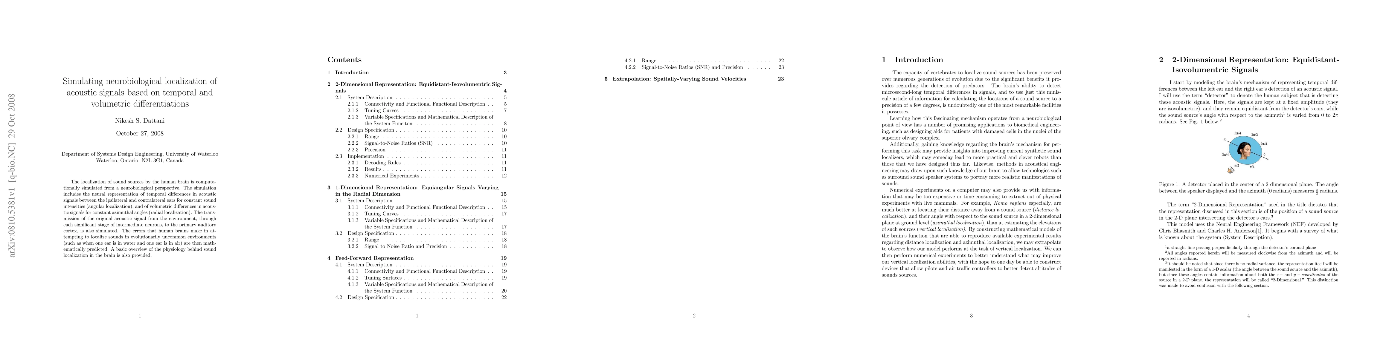 The localization of sound sources by the human brain is computationally simulated from a neurobiological perspective. The simulation includes the neural representation of temporal differences in acoustic signals between the ipsilateral and contralateral ears for constant sound intensities (angular localization), and of volumetric differences in acoustic signals for constant azimuthal angles (radial localization). The transmission of the original acoustic signal from the environment, through each significant stage of intermediate neurons, to the primary auditory cortex, is also simulated. The errors that human brains make in attempting to localize sounds in evolutionarily uncommon environments (such as when one ear is in water and one ear is in air) are then mathematically predicted. A basic overview of the physiology behind sound localization in the brain is also provided.