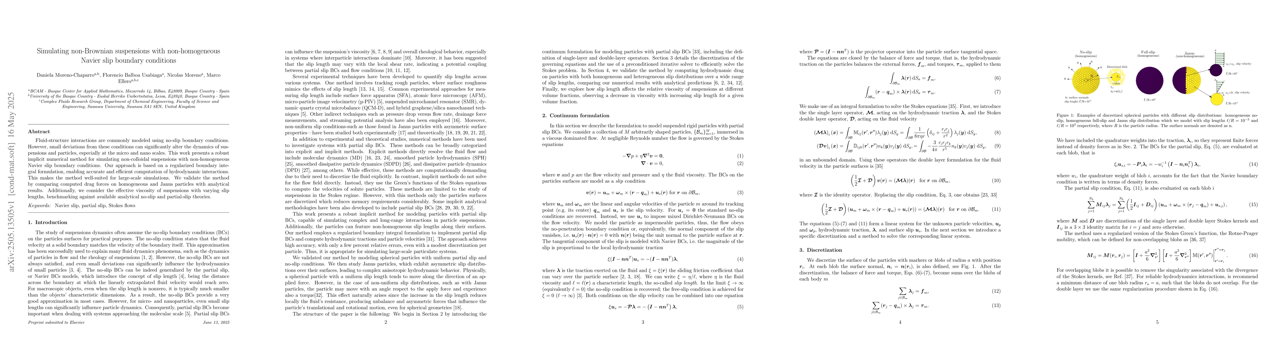 The research employs a regularized boundary integral formulation to develop an implicit numerical method for simulating non-colloidal suspensions with non-homogeneous Navier slip boundary conditions.