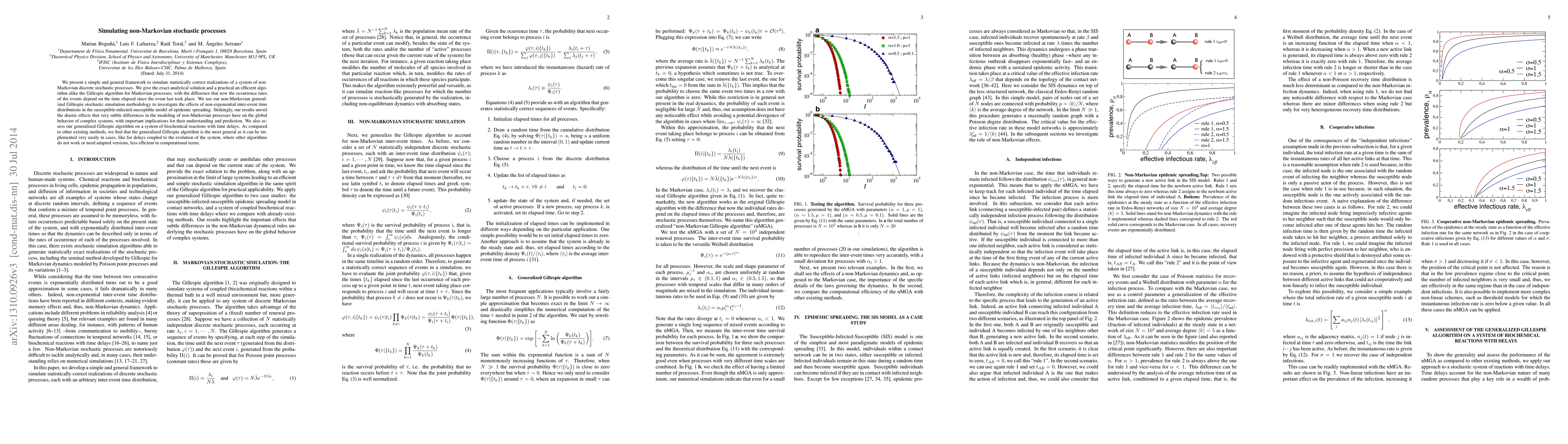 We present a simple and general framework to simulate statistically correct realizations of a system of non-Markovian discrete stochastic processes. We give the exact analytical solution and a practical an efficient algorithm alike the Gillespie algorithm for Markovian processes, with the difference that now the occurrence rates of the events depend on the time elapsed since the event last took place. We use our non-Markovian generalized Gillespie stochastic simulation methodology to investigate the effects of non-exponential inter-event time distributions in the susceptible-infected-susceptible model of epidemic spreading. Strikingly, our results unveil the drastic effects that very subtle differences in the modeling of non-Markovian processes have on the global behavior of complex systems, with important implications for their understanding and prediction. We also assess our generalized Gillespie algorithm on a system of biochemical reactions with time delays. As compared to other existing methods, we find that the generalized Gillespie algorithm is the most general as it can be implemented very easily in cases, like for delays coupled to the evolution of the system, where other algorithms do not work or need adapted versions, less efficient in computational terms.