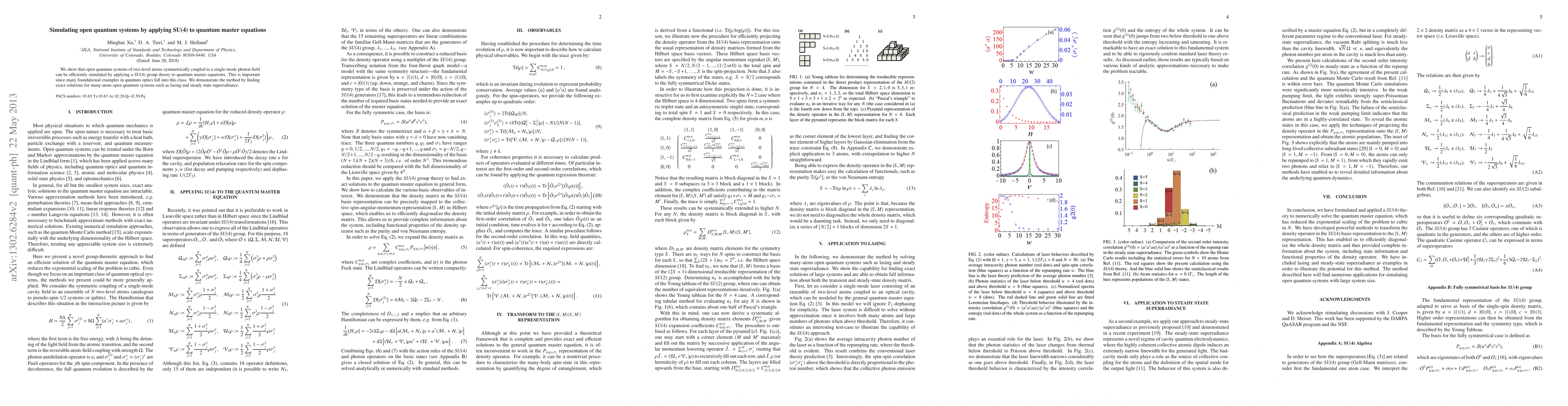 This paper demonstrates the use of SU(4) group theory to efficiently simulate open quantum systems of two-level atoms coupled to a single-mode photon field via quantum master equations. The method is shown to provide exact solutions for phenomena like lasing and steady state superradiance.