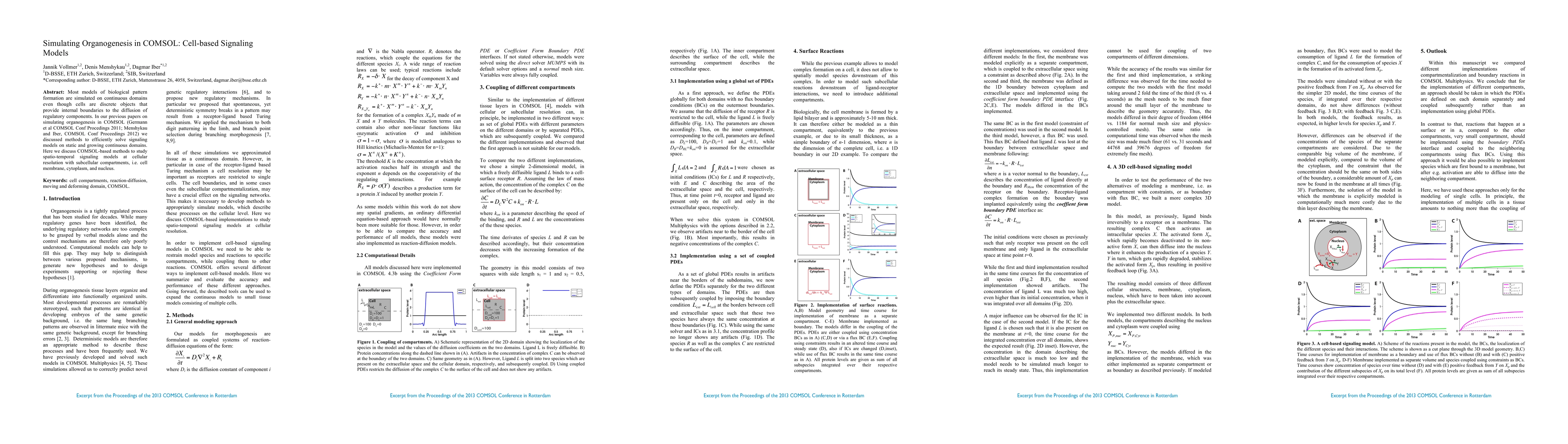 Most models of biological pattern formation are simulated on continuous domains even though cells are discrete objects that provide internal boundaries to the diffusion of regulatory components. In our previous papers on simulating organogenesis in COMSOL (Germann et al COMSOL Conf Procedings 2011; Menshykau and Iber, COMSOL Conf Proceedings 2012) we discussed methods to efficiently solve signaling models on static and growing continuous domains. Here we discuss COMSOL-based methods to study spatio-temporal signaling models at cellular resolution with subcellular compartments, i.e. cell membrane, cytoplasm, and nucleus.