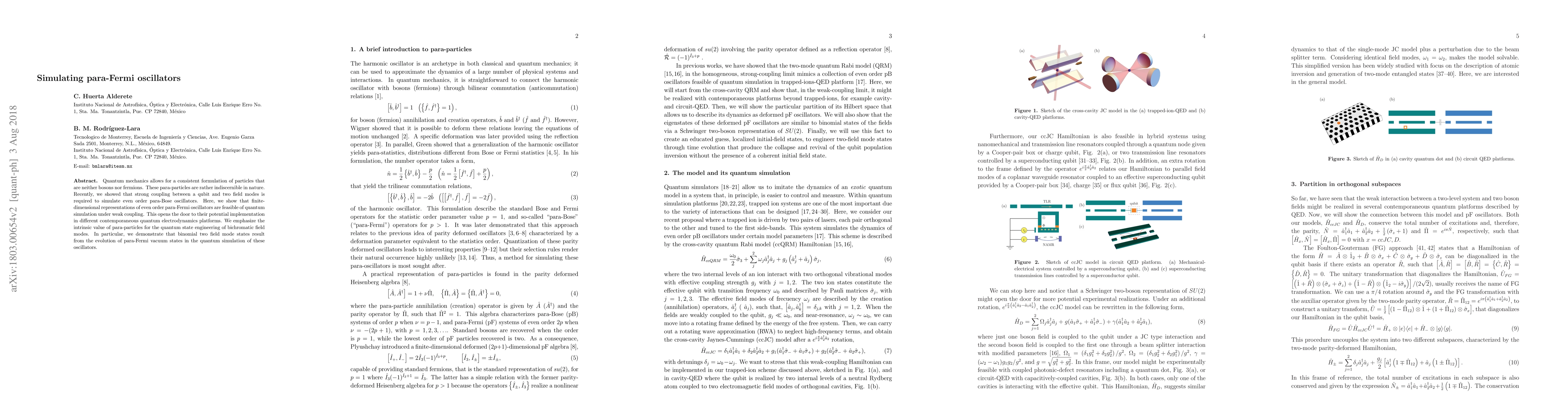 This paper demonstrates that quantum simulations of even order para-Fermi oscillators can be achieved under weak coupling conditions, contrasting with previous findings for para-Bose oscillators. The study highlights the potential for implementing these para-particles in various quantum electrodynamics platforms, emphasizing their role in engineering bichromatic field modes through binomial two field mode states.