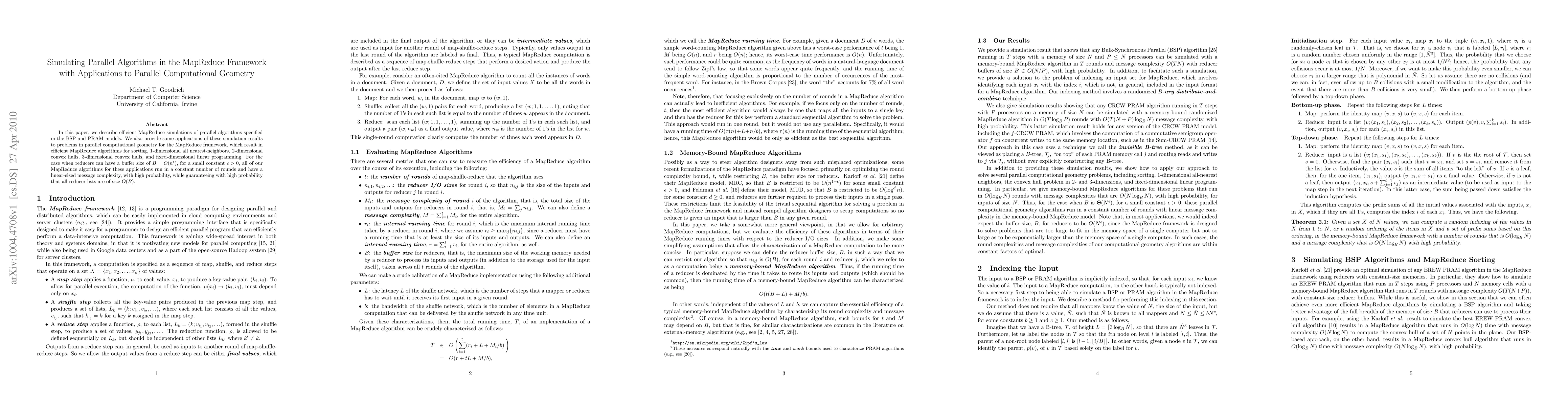 In this paper, we describe efficient MapReduce simulations of parallel algorithms specified in the BSP and PRAM models. We also provide some applications of these simulation results to problems in parallel computational geometry for the MapReduce framework, which result in efficient MapReduce algorithms for sorting, 1-dimensional all nearest-neighbors, 2-dimensional convex hulls, 3-dimensional convex hulls, and fixed-dimensional linear programming. For the case when reducers can have a buffer size of $B=O(n^\epsilon)$, for a small constant $\epsilon>0$, all of our MapReduce algorithms for these applications run in a constant number of rounds and have a linear-sized message complexity, with high probability, while guaranteeing with high probability that all reducer lists are of size $O(B)$.