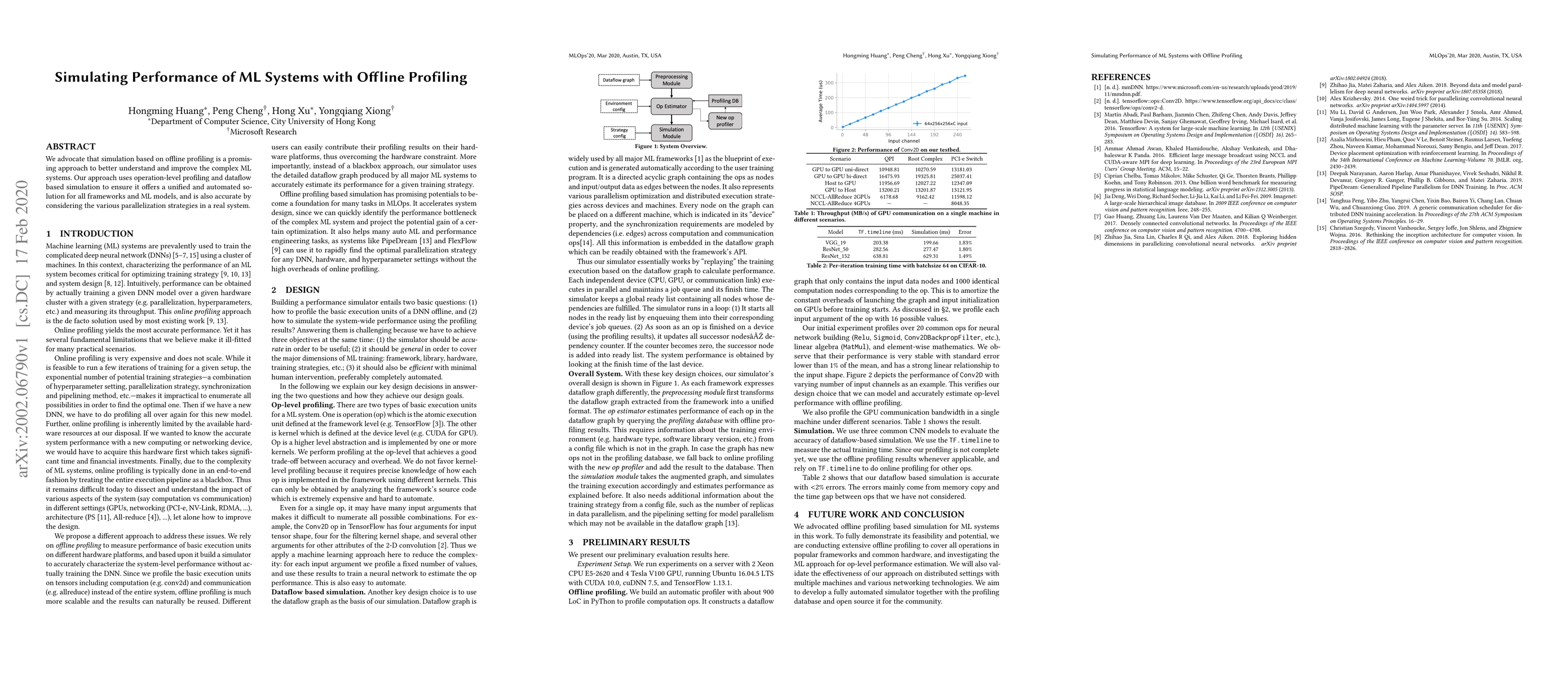 This paper proposes an offline profiling simulation method to enhance the performance of machine learning systems by using operation-level profiling and dataflow simulation, ensuring a unified and accurate solution across different frameworks and models while considering parallelization strategies.