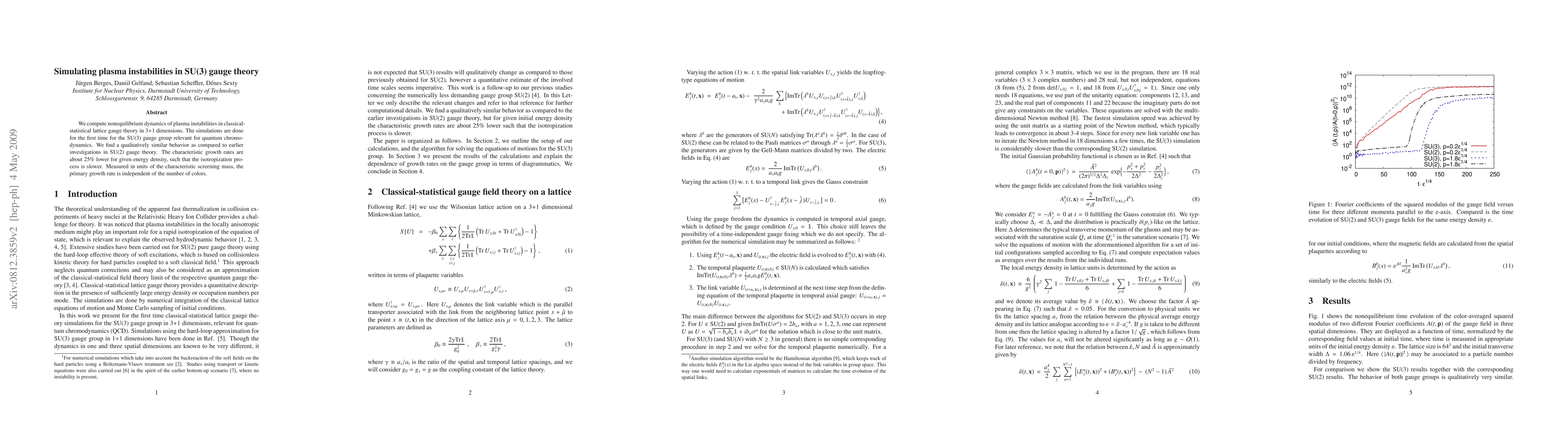 Researchers simulated plasma instabilities in SU(3) gauge theory and found that the behavior is similar to earlier investigations in SU(2) theory, with slower growth rates and a primary growth rate independent of the number of colors.