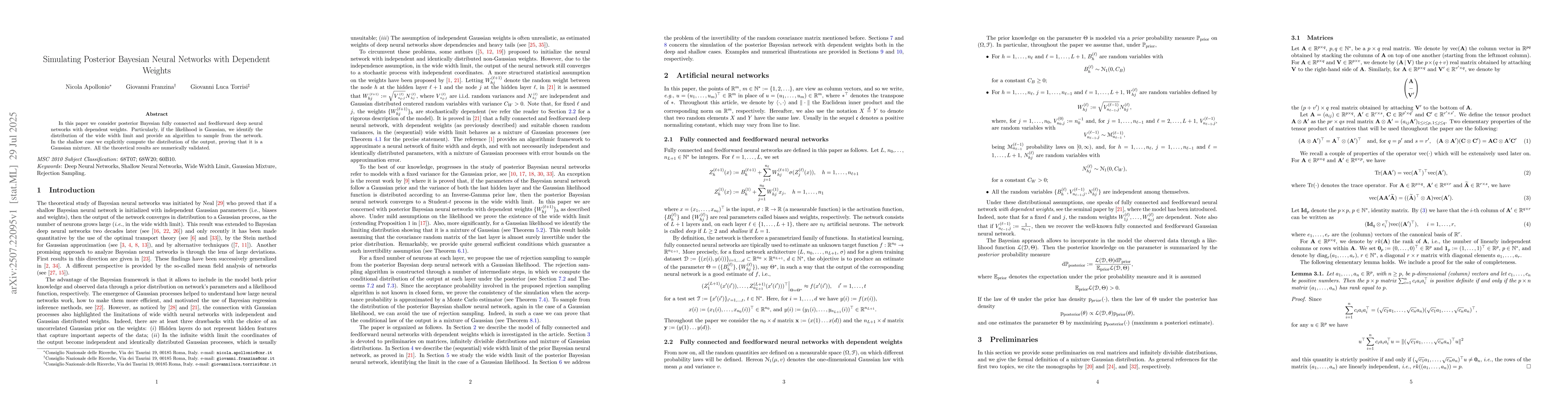In this paper we consider posterior Bayesian fully connected and feedforward deep neural networks with dependent weights. Particularly, if the likelihood is Gaussian, we identify the distribution of the wide width limit and provide an algorithm to sample from the network. In the shallow case we explicitly compute the distribution of the output, proving that it is a Gaussian mixture. All the theoretical results are numerically validated.