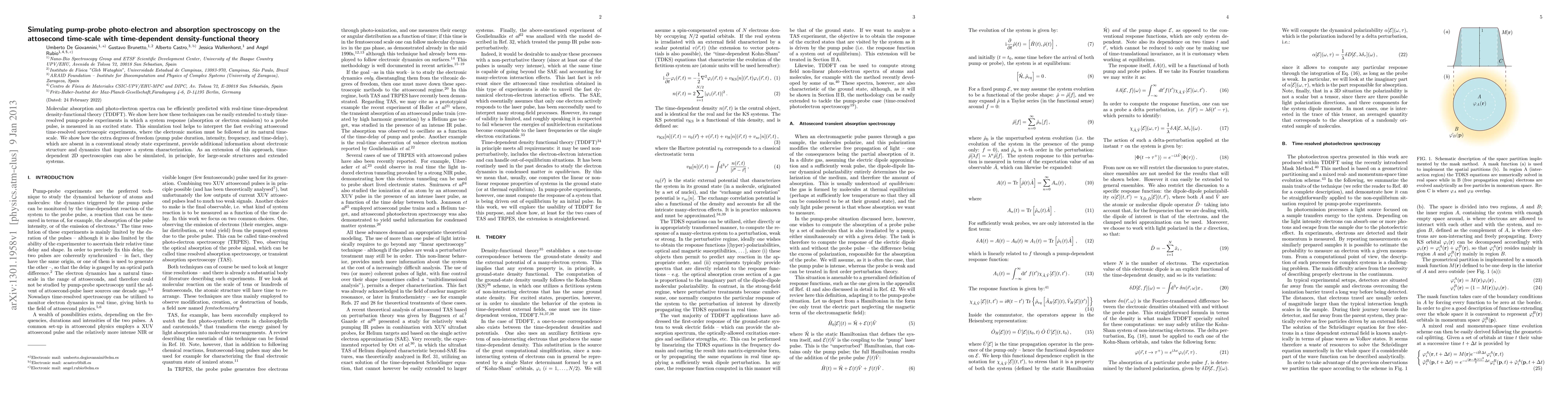 This paper demonstrates how time-dependent density-functional theory (TDDFT) can simulate pump-probe photo-electron and absorption spectroscopy at attosecond time scales, providing insights into electronic structure and dynamics. The method extends TDDFT to interpret complex time-resolved experiments, offering enhanced characterization of systems through additional parameters like pump pulse characteristics.