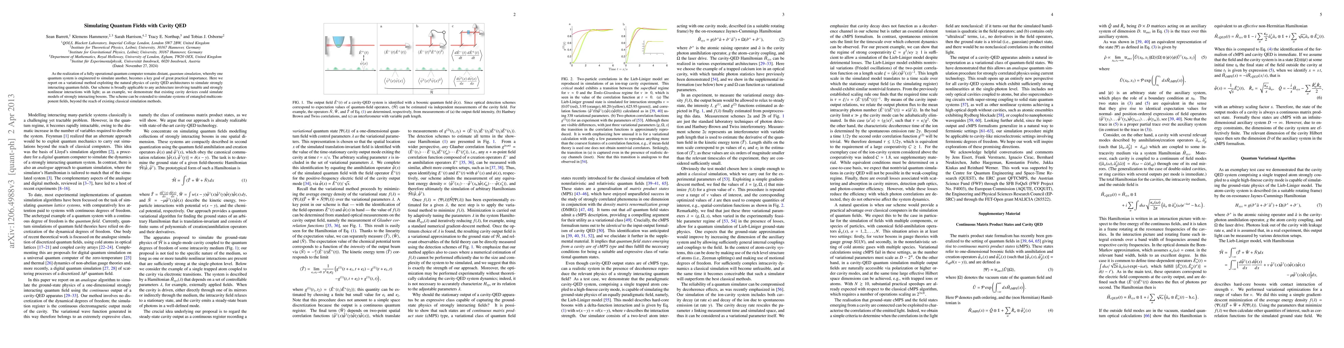 As the realization of a fully operational quantum computer remains distant, quantum simulation, whereby one quantum system is engineered to simulate another, becomes a key goal of great practical importance. Here we report on a variational method exploiting the natural physics of cavity QED architectures to simulate strongly interacting quantum fields. Our scheme is broadly applicable to any architecture involving tunable and strongly nonlinear interactions with light; as an example, we demonstrate that existing cavity devices could simulate models of strongly interacting bosons. The scheme can be extended to simulate systems of entangled multicomponent fields, beyond the reach of existing classical simulation methods.