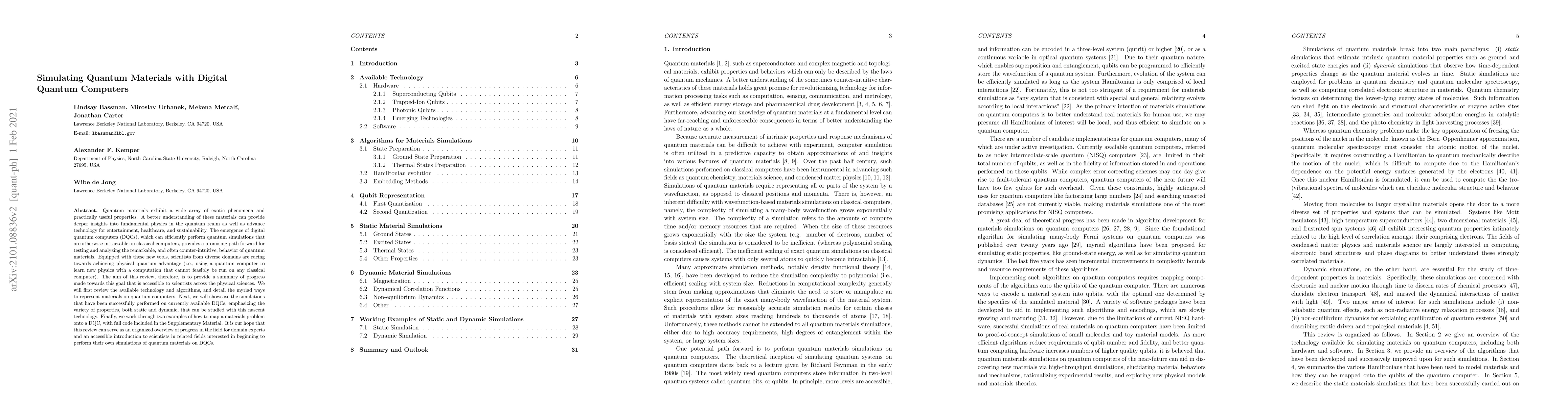 This paper reviews advancements in simulating quantum materials using digital quantum computers, focusing on the technology, algorithms, and successful simulations performed. It aims to provide both a comprehensive overview for domain experts and an accessible introduction for scientists in related fields interested in quantum simulations.