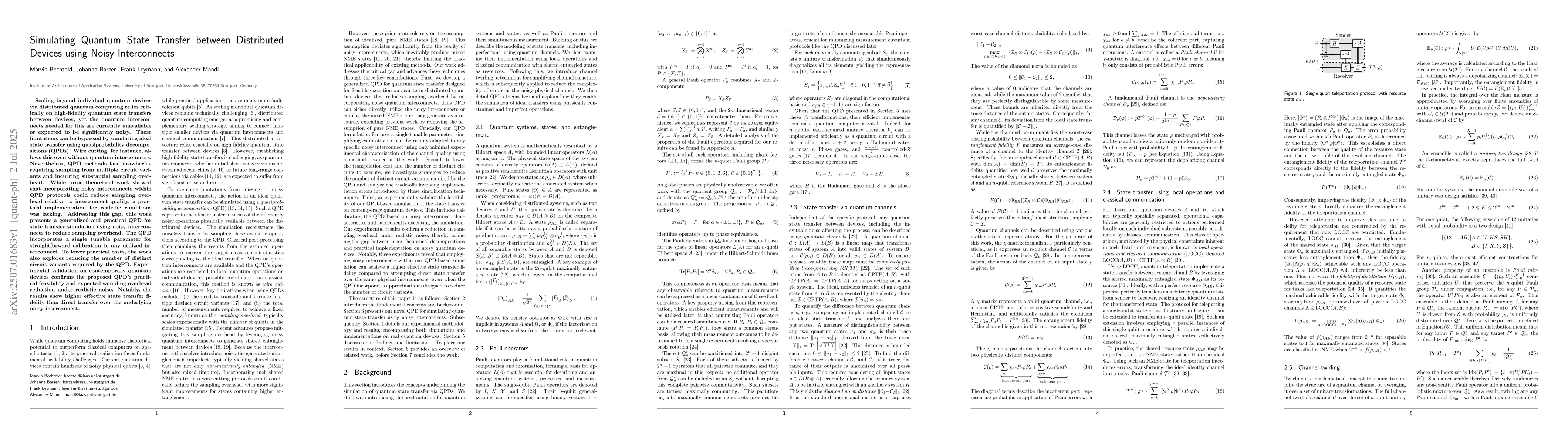 Scaling beyond individual quantum devices via distributed quantum computing relies critically on high-fidelity quantum state transfers between devices, yet the quantum interconnects needed for this are currently unavailable or expected to be significantly noisy. These limitations can be bypassed by simulating ideal state transfer using quasiprobability decompositions (QPDs). Wire cutting, for instance, allows this even without quantum interconnects. Nevertheless, QPD methods face drawbacks, requiring sampling from multiple circuit variants and incurring substantial sampling overhead. While prior theoretical work showed that incorporating noisy interconnects within QPD protocols could reduce sampling overhead relative to interconnect quality, a practical implementation for realistic conditions was lacking. Addressing this gap, this work presents a generalized and practical QPD for state transfer simulation using noisy interconnects to reduce sampling overhead. The QPD incorporates a single tunable parameter for straightforward calibration to any utilized interconnect. To lower practical costs, the work also explores reducing the number of distinct circuit variants required by the QPD. Experimental validation on contemporary quantum devices confirms the proposed QPD's practical feasibility and expected sampling overhead reduction under realistic noise. Notably, the results show higher effective state transfer fidelity than direct transfer over the underlying noisy interconnect.