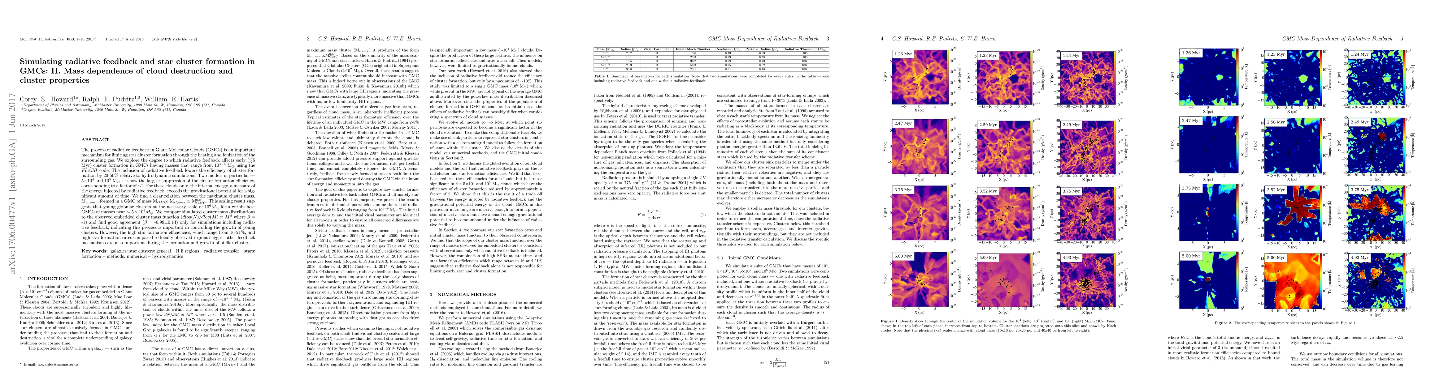 This paper investigates how radiative feedback influences star cluster formation in Giant Molecular Clouds (GMCs) of varying masses, finding that radiative feedback reduces cluster formation efficiency by 20-50%. The study reveals a scaling relationship between the maximum cluster mass and GMC mass, suggesting that large young globular clusters form in massive GMCs. Simulations including radiative feedback match observed cluster mass distributions, highlighting its importance in controlling cluster growth.