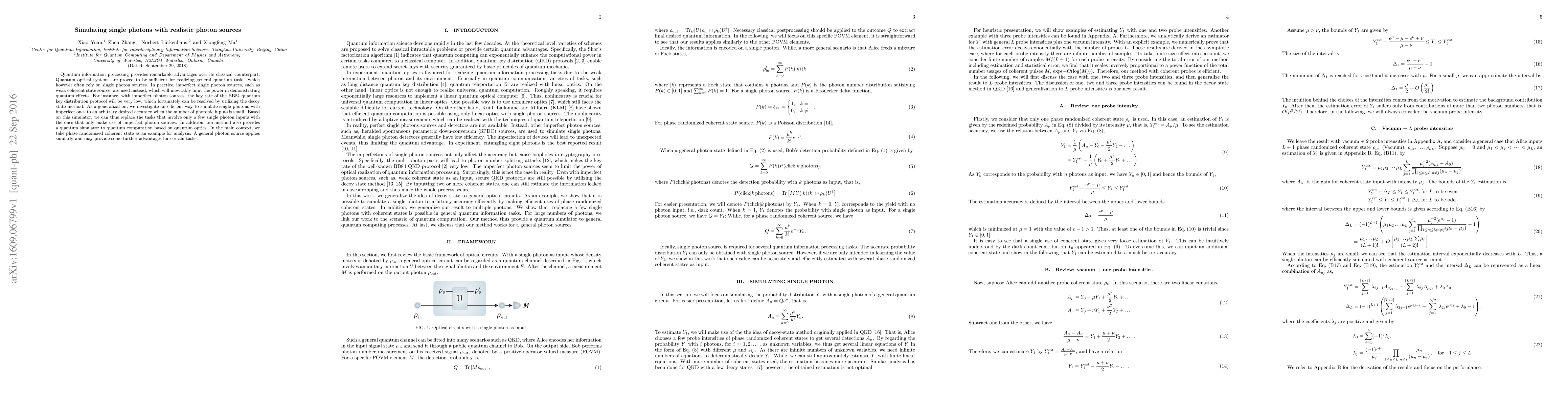 Quantum information processing provides remarkable advantages over its classical counterpart. Quantum optical systems are proved to be sufficient for realizing general quantum tasks, which however often rely on single photon sources. In practice, imperfect single photon sources, such as weak coherent state source, are used instead, which will inevitably limit the power in demonstrating quantum effects. For instance, with imperfect photon sources, the key rate of the BB84 quantum key distribution protocol will be very low, which fortunately can be resolved by utilizing the decoy state method. As a generalization, we investigate an efficient way to simulate single photons with imperfect ones to an arbitrary desired accuracy when the number of photonic inputs is small. Based on this simulator, we can thus replace the tasks that involve only a few single photon inputs with the ones that only make use of imperfect photon sources. In addition, our method also provides a quantum simulator to quantum computation based on quantum optics. In the main context, we take phase randomized coherent state as an example for analysis. A general photon source applies similarly and may provide some further advantages for certain tasks.