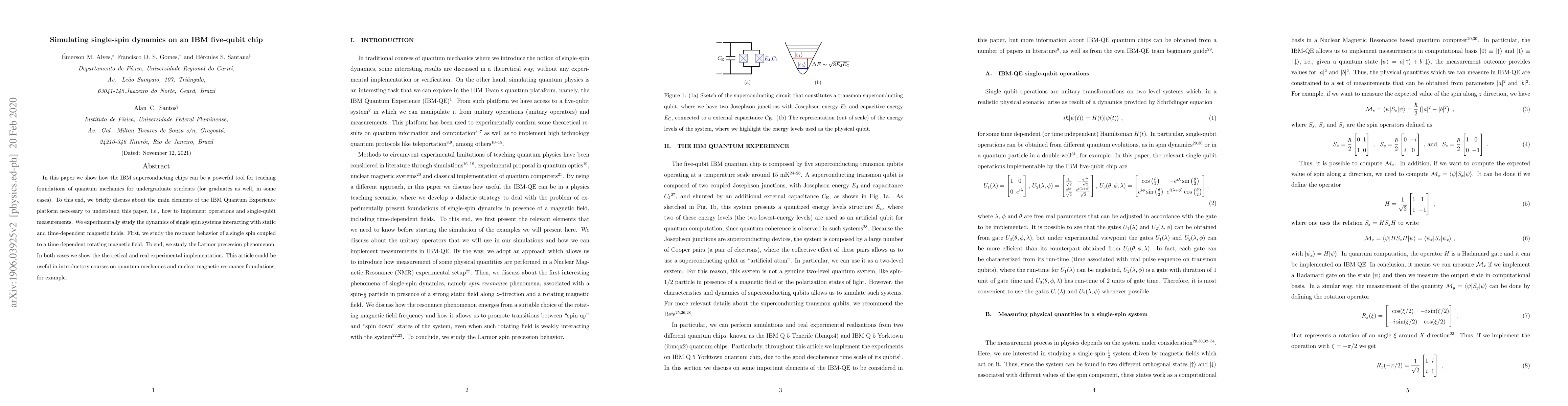 In this paper we show how the IBM superconducting chips can be a powerful tool for teaching foundations of quantum mechanics for undergraduate students (for graduates as well, in some cases). To this end, we briefly discuss about the main elements of the IBM Quantum Experience platform necessary to understand this paper, i.e., how to implement operations and single-qubit measurements. We experimentally study the dynamics of single spin systems interacting with static and time-dependent magnetic fields. First, we study the resonant behavior of a single spin coupled to a time-dependent rotating magnetic field. To end, we study the Larmor precession phenomenon. In both cases we show the theoretical and real experimental implementation. This article could be useful in introductory courses on quantum mechanics and nuclear magnetic resonance foundations, for example.