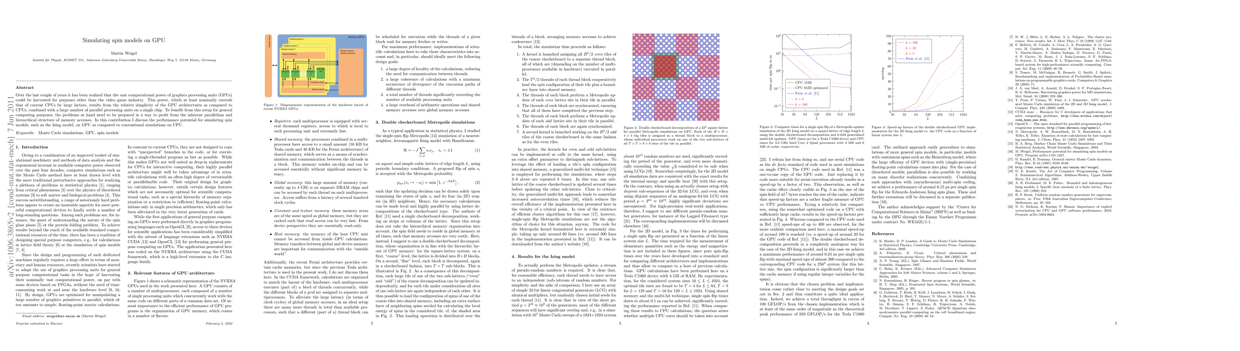 This paper explores leveraging the parallel processing power of GPUs to simulate spin models like the Ising model, demonstrating significant performance improvements over traditional CPU-based simulations due to the GPUs' inherent parallelism and memory access structure.