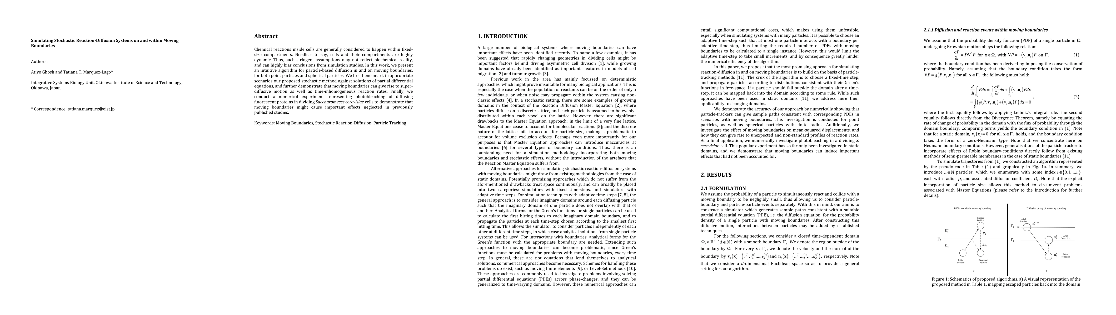 This paper introduces an algorithm for simulating stochastic reaction-diffusion systems on and within moving boundaries, demonstrating its effectiveness through comparisons with partial differential equations and showcasing its impact on super diffusive motion and time-inhomogeneous reaction rates. The method is exemplified by simulating photobleaching in dividing yeast cells, highlighting the significance of dynamic boundaries in biochemical simulations.