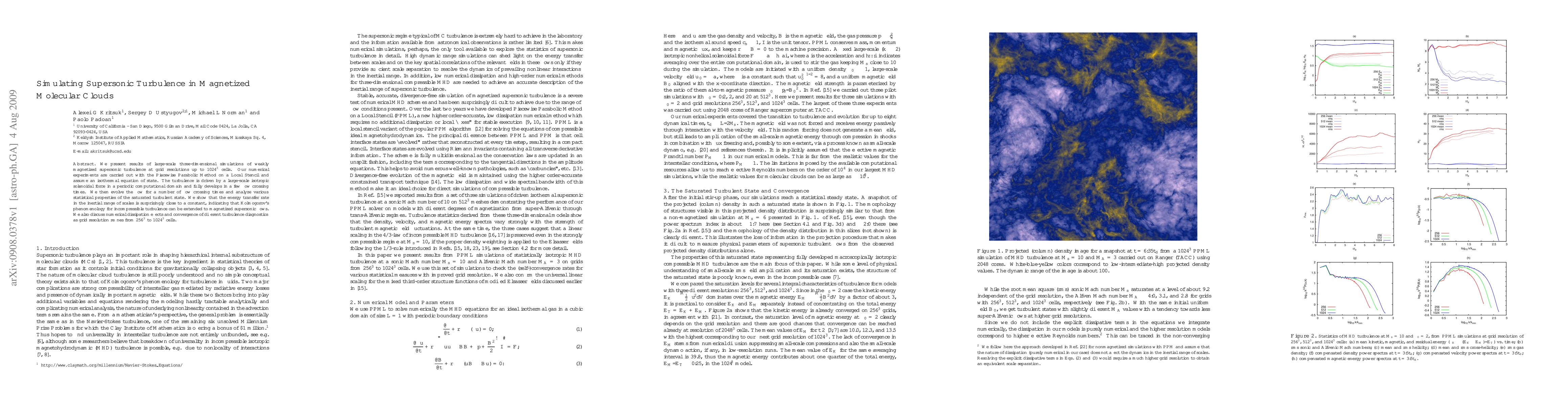 This paper presents large-scale simulations of weakly magnetized supersonic turbulence, showing that energy transfer in the inertial range remains constant, suggesting Kolmogorov's turbulence phenomenology applies to magnetized flows. The study also examines numerical dissipation and convergence across varying grid resolutions.
