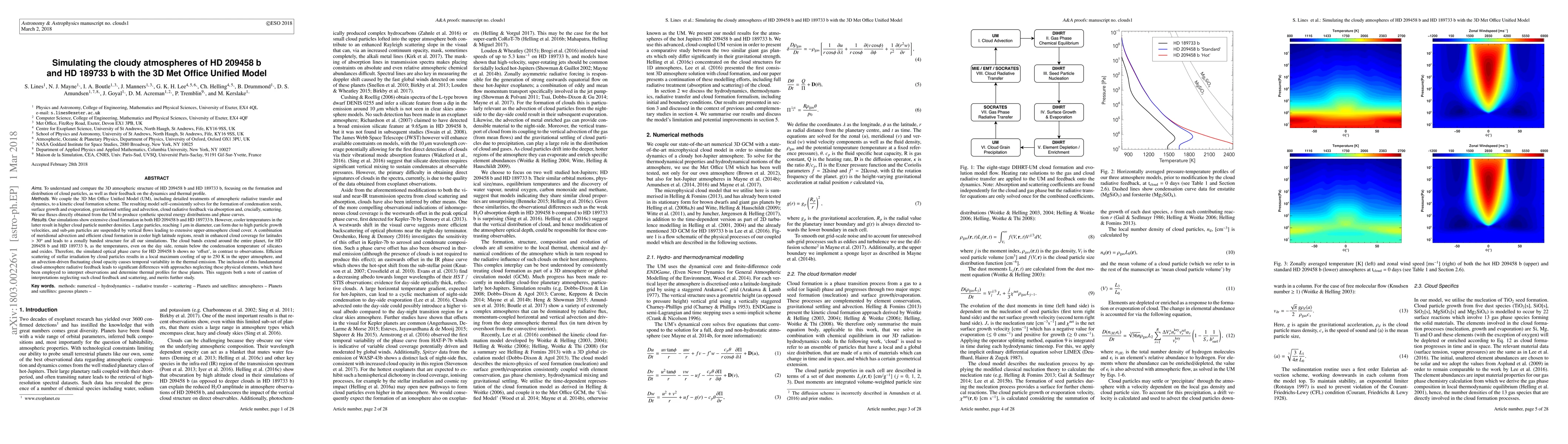 This study uses the 3D Met Office Unified Model to simulate the atmospheric structures of HD 209458 b and HD 189733 b, focusing on cloud formation and its radiative feedback. The simulations reveal extensive cloud formation, with cooler temperatures in HD 189733 b leading to higher cloud particle densities and a zonally banded cloud structure.