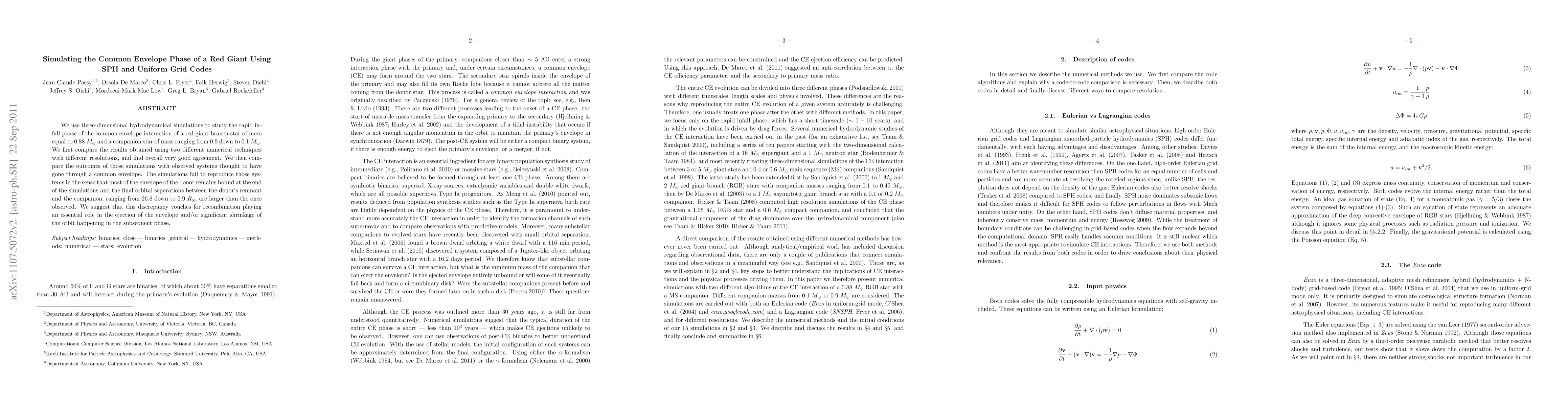 We use three-dimensional hydrodynamical simulations to study the rapid infall phase of the common envelope interaction of a red giant branch star of mass equal to 0.88 \msun and a companion star of mass ranging from 0.9 down to 0.1 \msun. We first compare the results obtained using two different numerical techniques with different resolutions, and find overall very good agreement. We then compare the outcomes of those simulations with observed systems thought to have gone through a common envelope. The simulations fail to reproduce those systems in the sense that most of the envelope of the donor remains bound at the end of the simulations and the final orbital separations between the donor's remnant and the companion, ranging from 26.8 down to 5.9 \rsun, are larger than the ones observed. We suggest that this discrepancy vouches for recombination playing an essential role in the ejection of the envelope and/or significant shrinkage of the orbit happening in the subsequent phase.