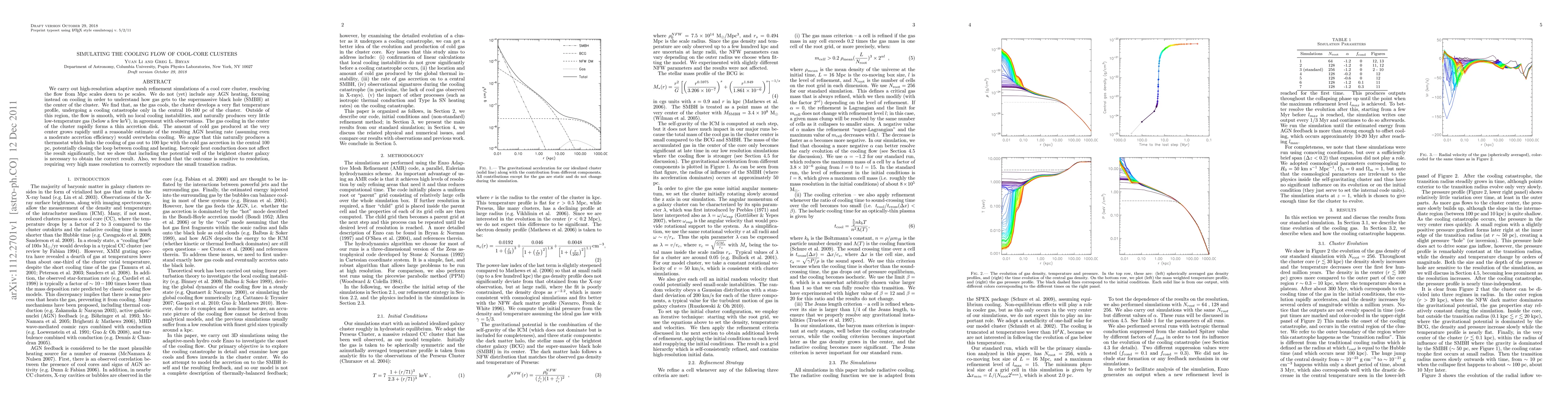 Researchers simulated the cooling flow of a cool-core cluster, finding that gas cools rapidly in the center, forming an accretion disk, and triggering a thermostat that links central heating to outer cooling.