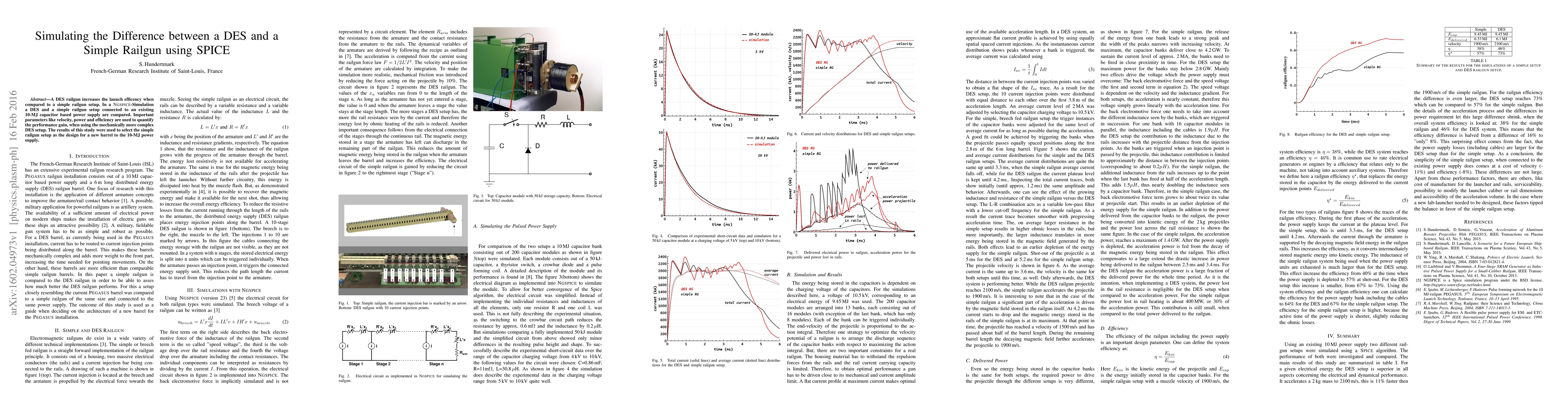 A DES railgun increases the launch efficiency when compared to a simple railgun setup. In a NGSPICE-simulation a DES and a simple railgun setup connected to an existing 10-MJ capacitor based power supply are compared. Important parameters like velocity, power and efficiency are used to quantify the performance gain, when using the mechanically more complex DES setup. The results of this study were used to select the simple railgun setup as the design for a new barrel to the 10-MJ power supply.