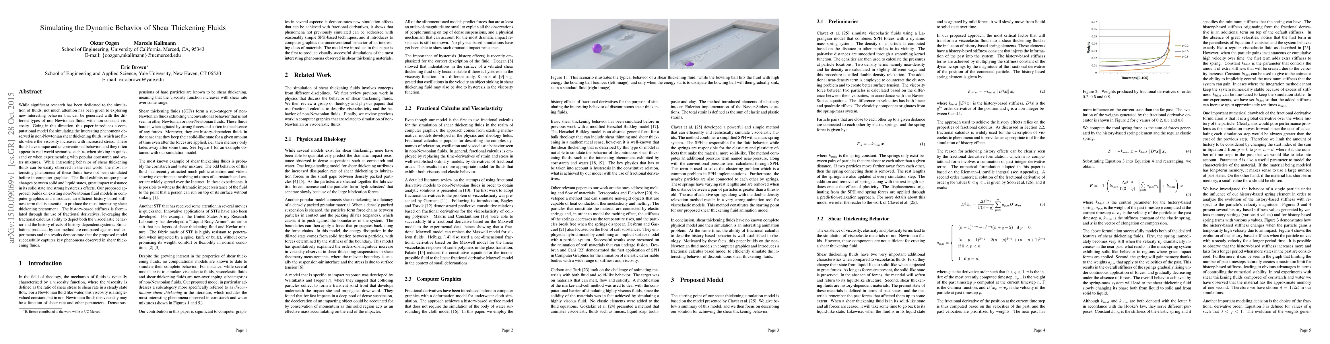 This paper introduces a computational model for simulating shear thickening fluids, which exhibit increased viscosity under stress, using a history-based stiffness term based on fractional derivatives. The model successfully captures the unique phase changes and impact resistance observed in real-world shear thickening fluids.